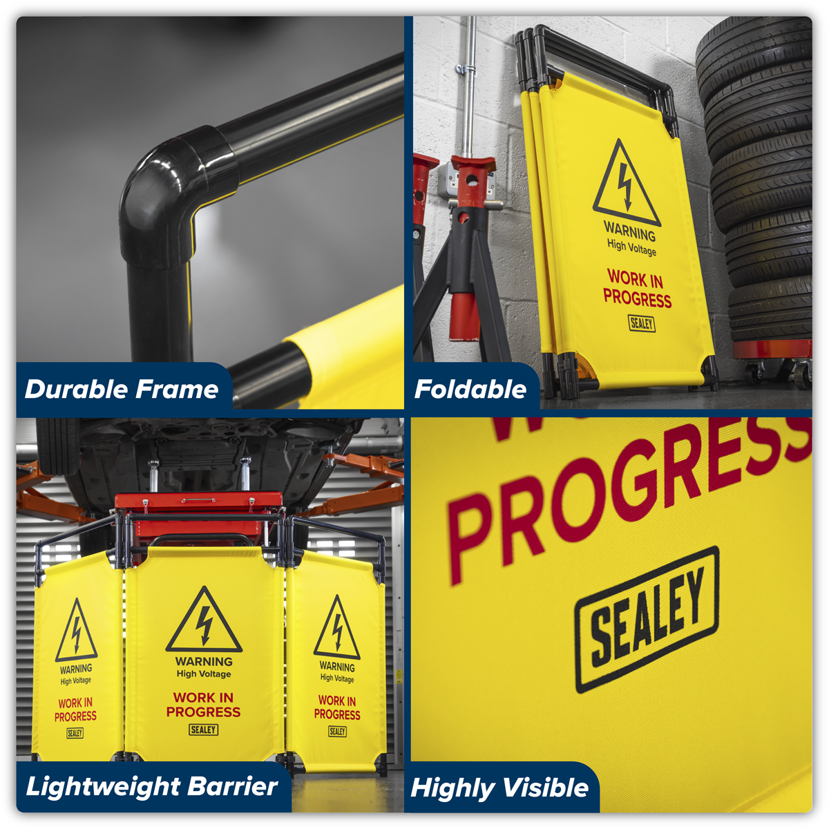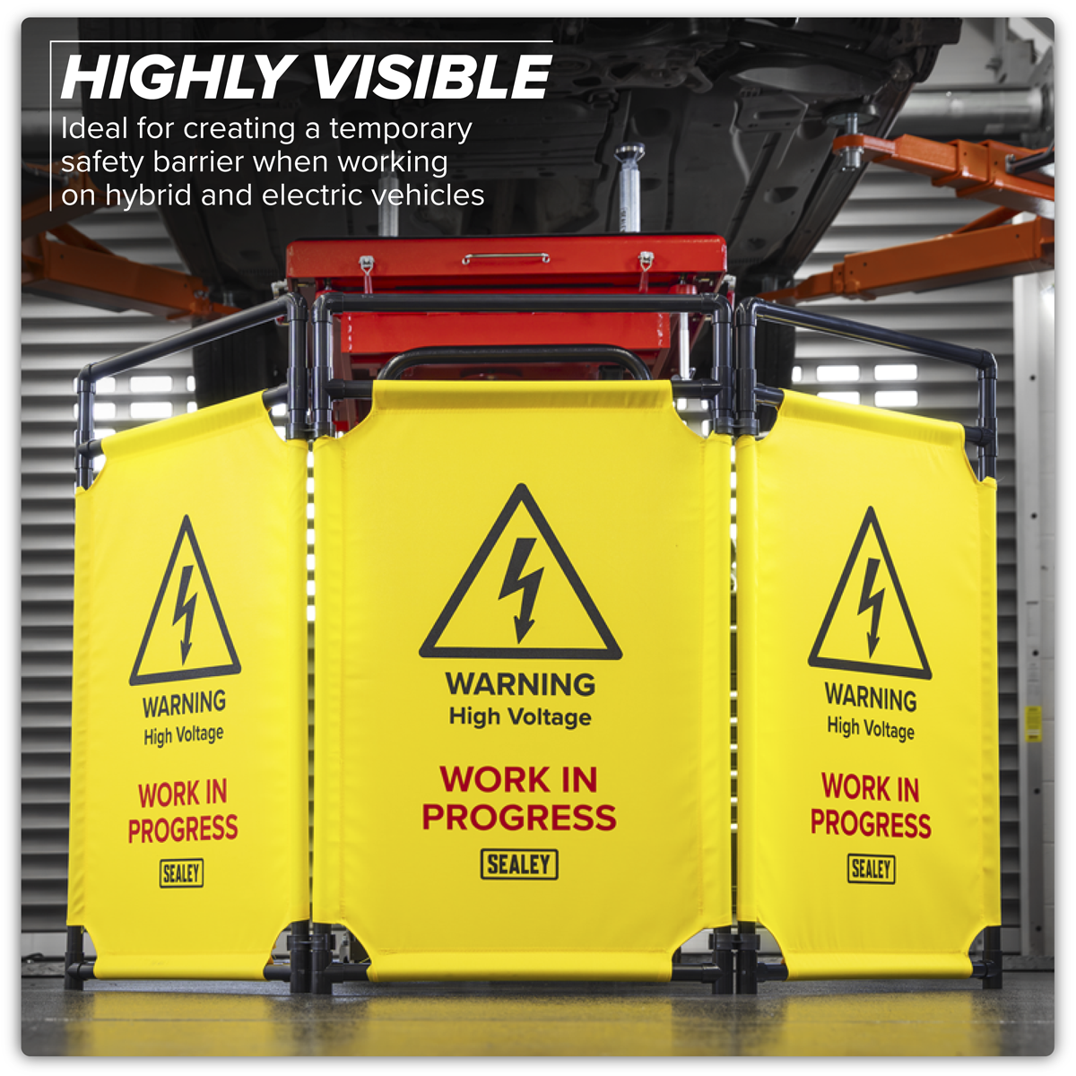 41.24 2026-05-06Highly visible and perfect for creating a temporary safety barrier when working on hybrid and electric vehicles. Made from durable, non-conductive materials. Barrier length: 1780mm. (Each panel measures 590 x 980mm). Lightweight barrier that can be easily moved around the workshop. Foldable for convenient compact storage when not in use.