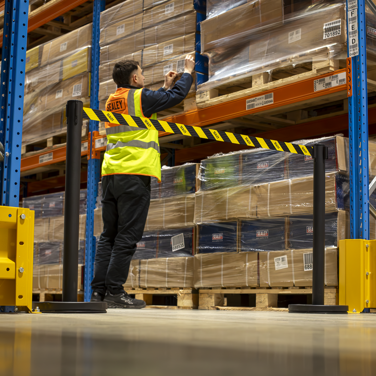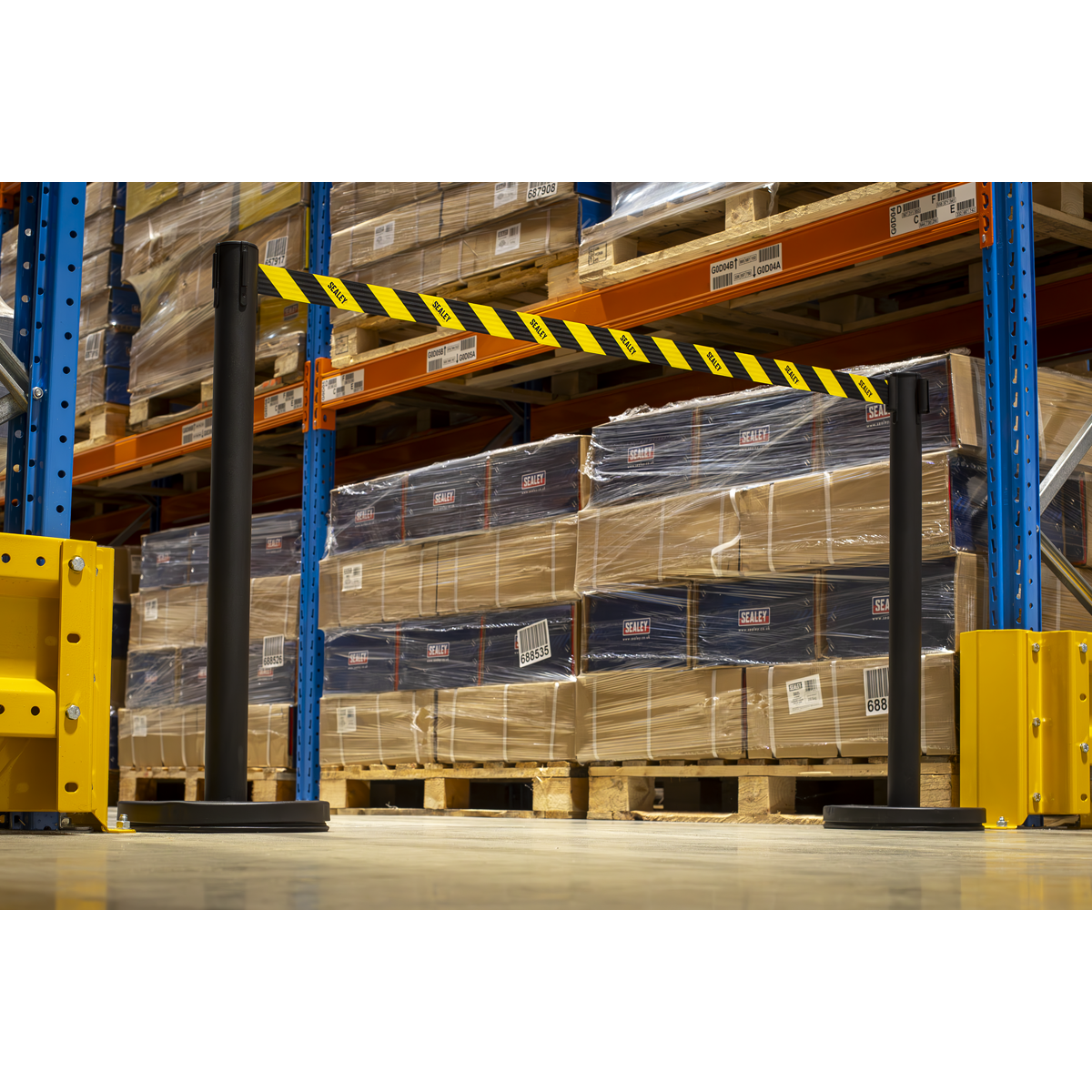 62.36 2026-01-03Retractable safety belt barrier with post system. Quick solution for restricting or cordoning off areas such as when operating on high voltage systems. Can also be used in other applications such as crowd crows control in high traffic areas. Black and yellow colour way for easy identification of hazards. Quick to set up and adapt to changing needs with four-way connectivity feature.