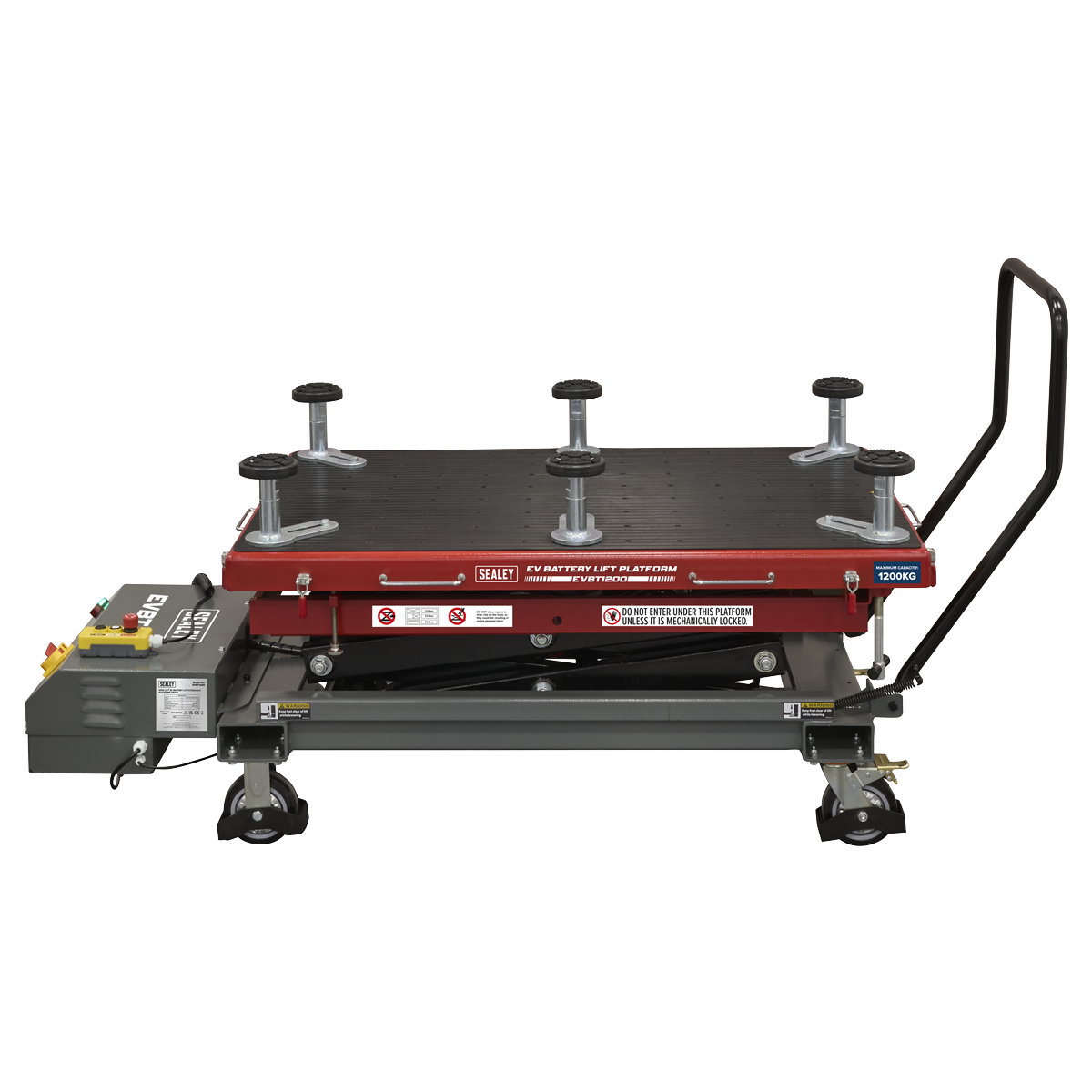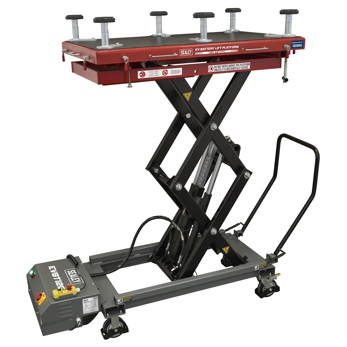 3113.95 2025-11-01Heavy-duty construction, solid steel framework. High lift version, 1780mm maximum platform height. Powerful electric motor, for smooth controlled ascent and descent. Hand control with a safety stop feature. Multiple adjustments can be made to the table and saddles, for the removal and installation of most EV vehicle batteries. Fitted with four composite wheels. Two fixed and two locking castors for easy rolling over rough workshop floors. Designed to assist with EV battery maintenance on electric vehicles. Can also be used for assisting with many other day-to-day workshop tasks such as removing/installing engines, transmissions, fuel tanks, subframes and can be used as a mobile service bench. This item is heavy. Extra assistance must be provided at the delivery point to help its safe delivery.