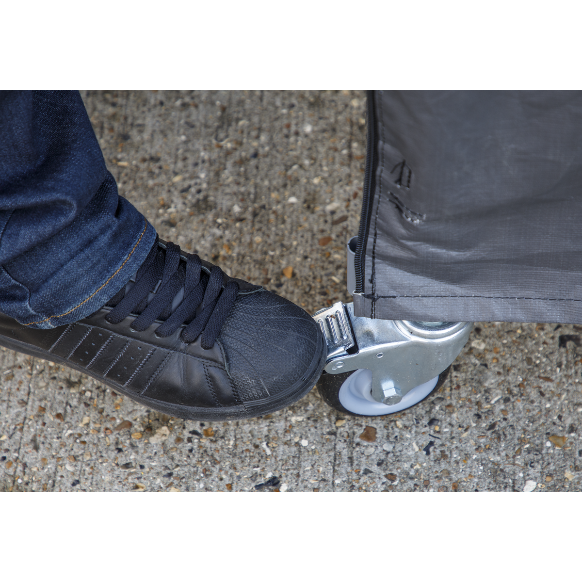 1064.95 2025-11-11Extending garage extension, perfect for allowing temporary use of a driveway as a garage. Supplied with a powder coated steel frame. 195g/m2 PE Tarp with UV protection and completely waterproof.