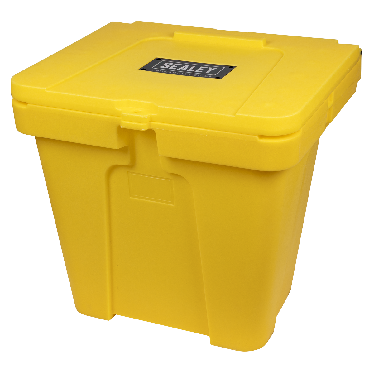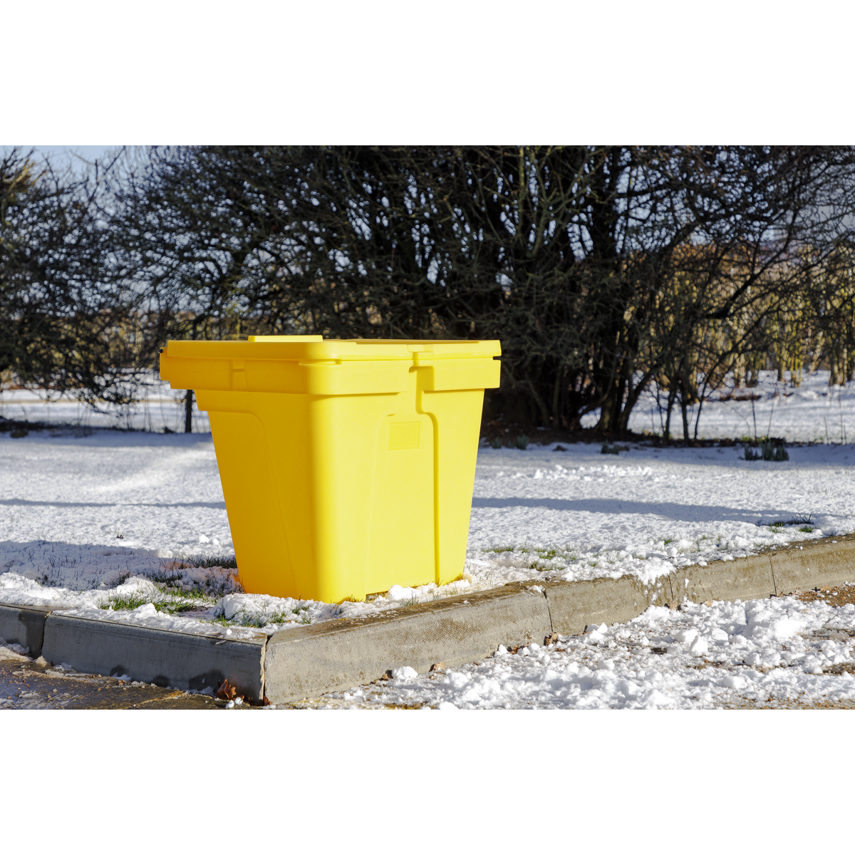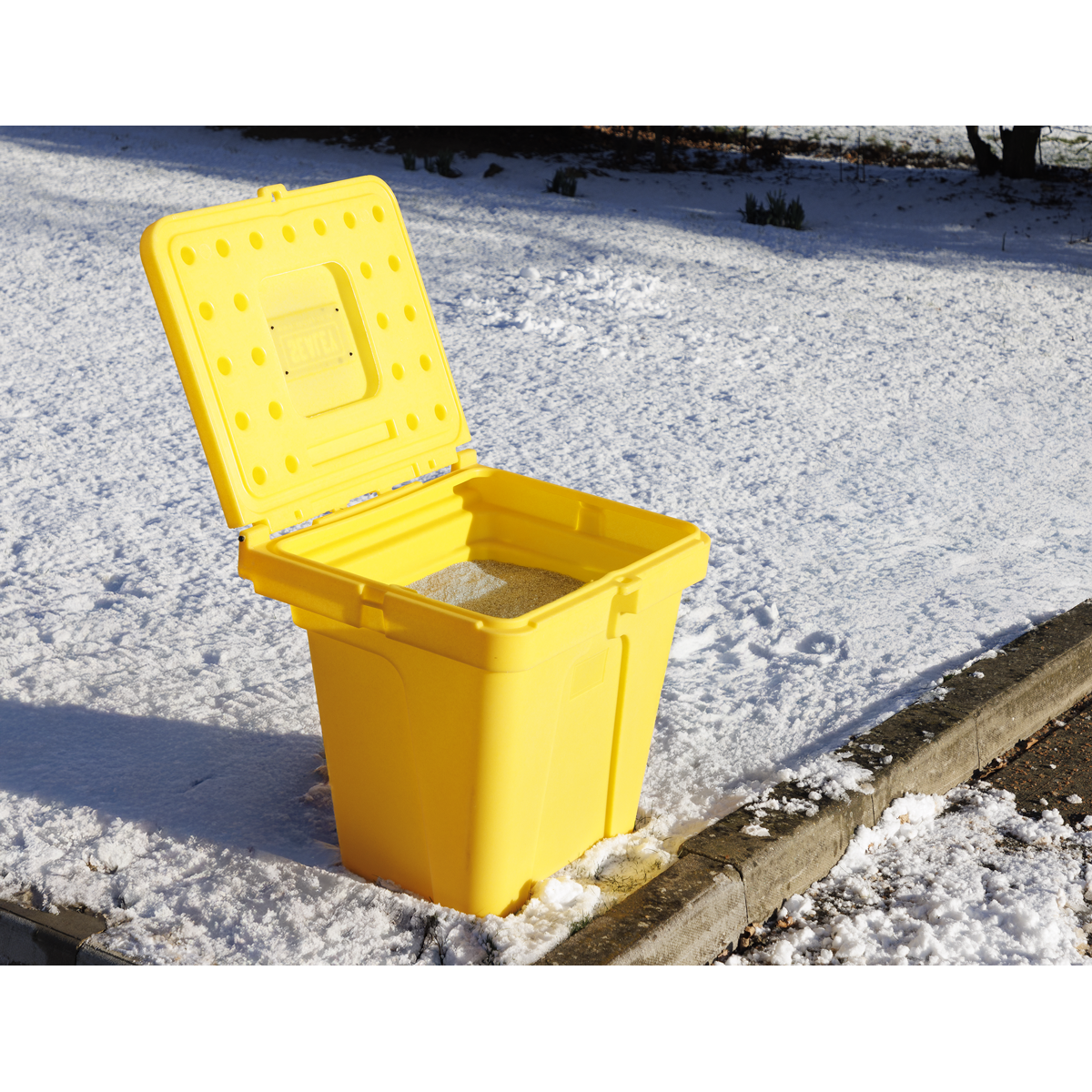 194.96 2026-03-19Manufactured from hard-wearing polyethylene. Ideal for indoor and outdoor storage of grit, sand and salt. Angled lid forces water to run off, keeping contents dry. Features large opening for easy-access. Lockable lid (Padlock not included).