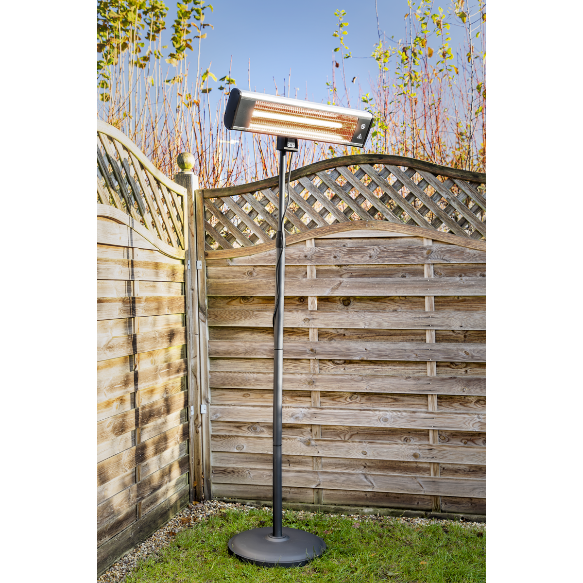 109.75 2025-12-21A totally dry heat, no condensation, no gas, no fumes and no smell. Reaches maximum heat output within seconds of being turned on. Highly polished aluminium reflector for maximum heat efficiency. Adjusts horizontally through 25° while mounted. Controlled by push on/off switch or remote control. Ideal for industrial or domestic applications. Suitable for outdoor use only (IP65 Rated). Supplied with floor stand.
