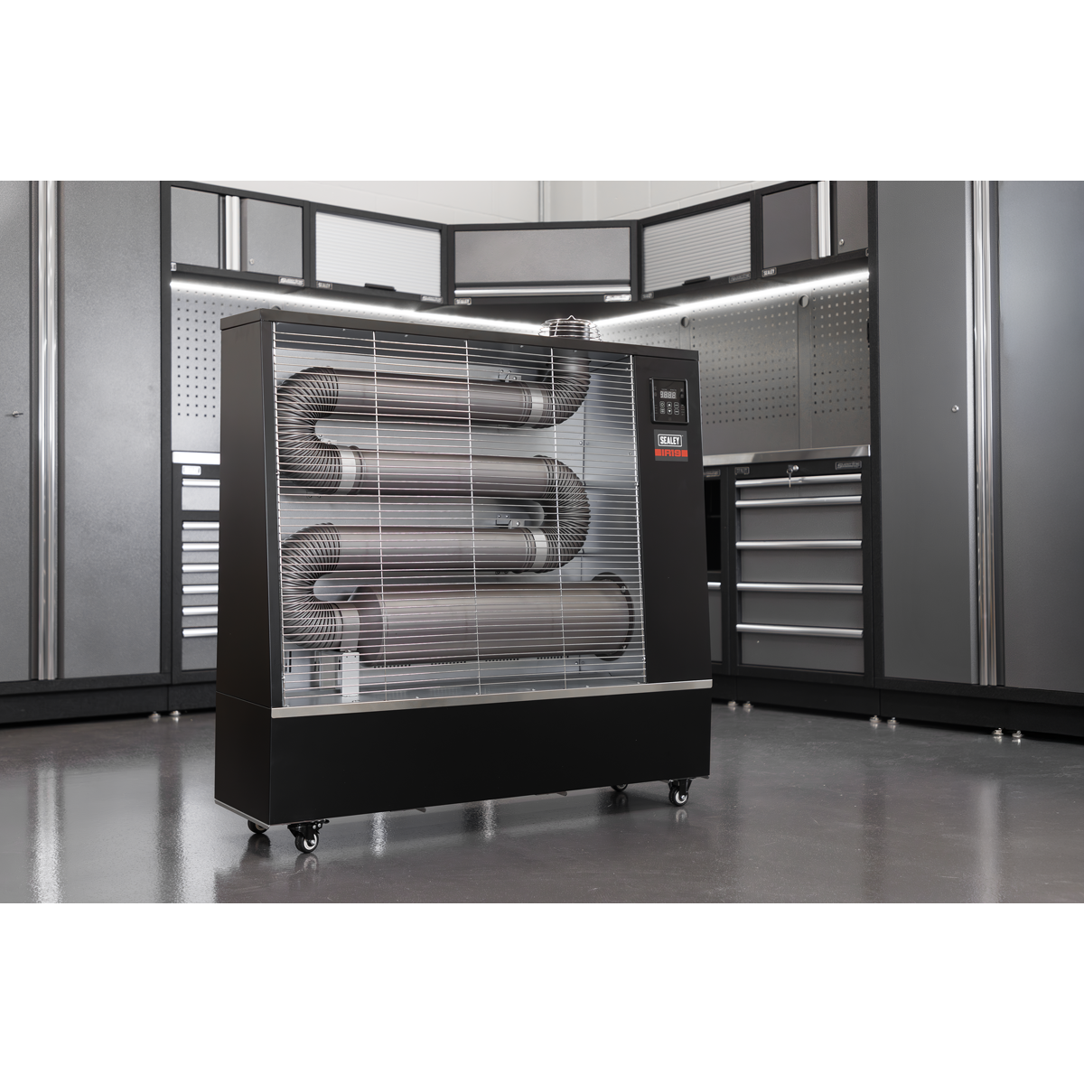 1871.95 2026-02-26Versatile and compact diesel-fuelled Infrared technology heater has no electric fan, meaning there is no air movement and the heat is spread evenly in all directions, quietly and dust-free. Ideal for use in well-ventilated indoor areas including garages, workshops, warehouses and marquees. Extremely inexpensive to run, using only around 1.5L of fuel per hour. Clean burn and precisely controlled fuel supply, ensure that no unpleasant odours or carbon monoxide enter the air. Equipped with advanced safety features including overheat protection, auto-misfire, tilt, shock, low fuel shut-off sensors and flame-out fuel cut. Features 24hr timer and temperature control thermostat. Soft-touch control panel with LED display. Fitted with four castor wheels for easy manoeuvrability. Stainless exhaust available - IREX1 (End Pipe), IREX2 (1m Extension), IREX3 (90° Bend). Only suitable for use with fresh, clean diesel. The use of any other fuels or old/second-hand diesel will invalidate the warranty and may cause the unit to malfunction.