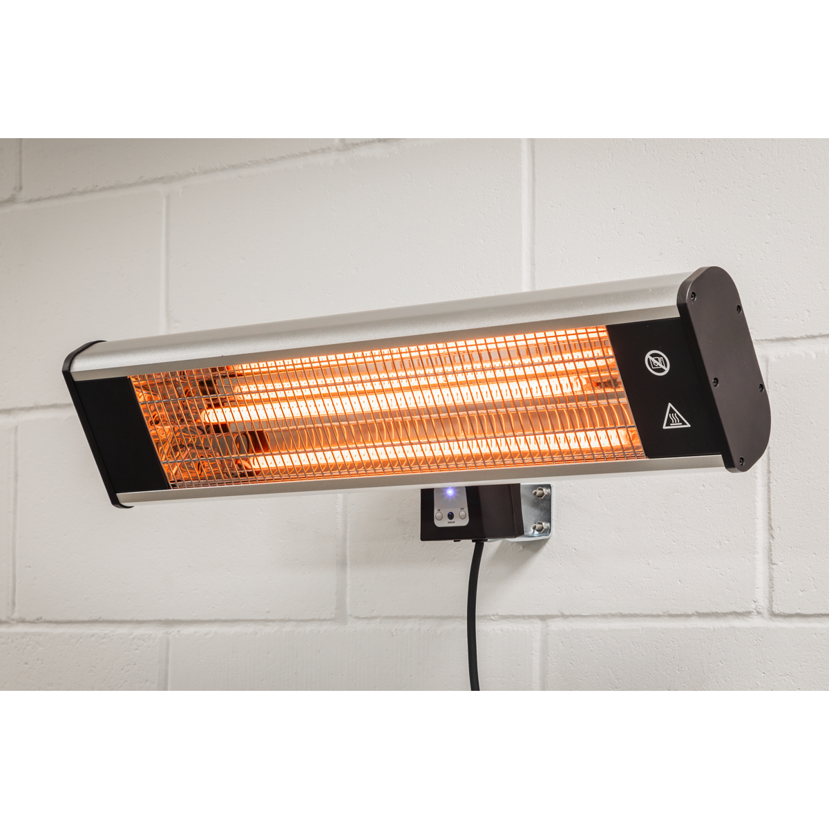 A totally dry heat, with no condensation, gas, fumes or smell. Reaches maximum heat output within seconds of being turned on. Highly polished aluminium reflector for maximum heat efficiency. Adjusts horizontally through 25° while mounted. Controlled by push-on/off switch or remote control. Ideal for industrial or domestic applications. Suitable for outdoor use only (IP65 Rated). Optional floor stand available Model No. IHS1.