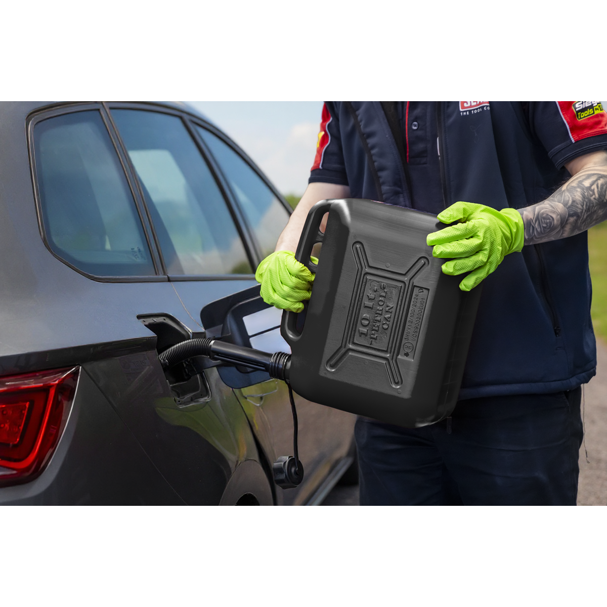 14.36 2026-05-1410L Plastic fuel can with safety screw lock cap and flexible spout. Colour-coded black for Diesel. View strip to gauge quantity.