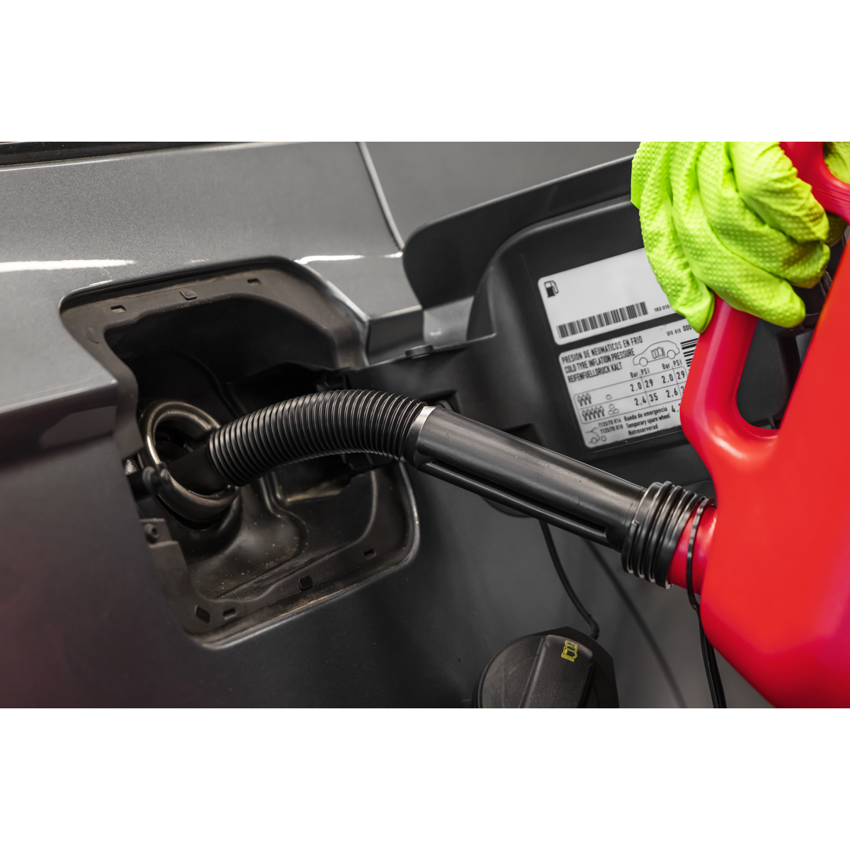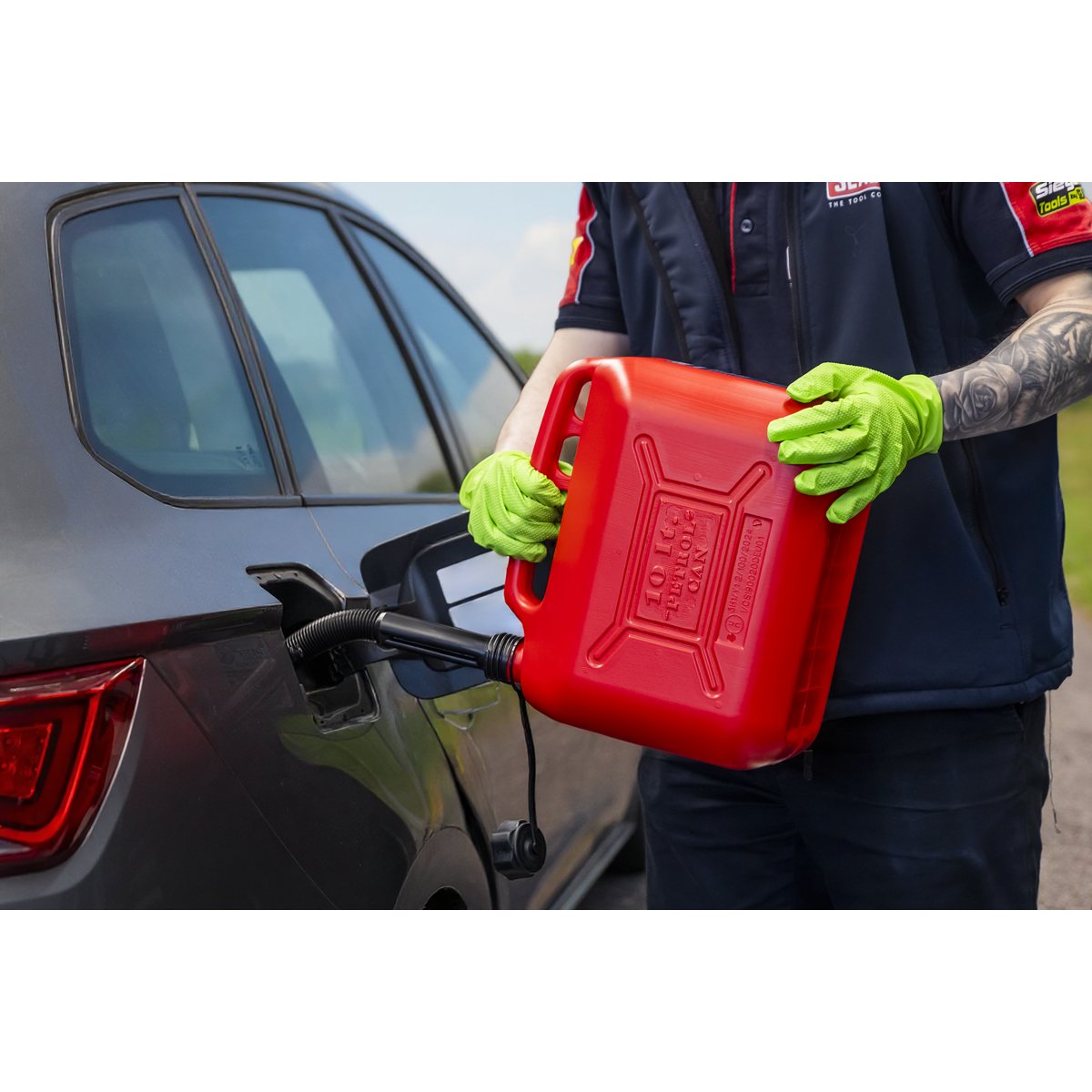 14.36 2026-05-1410L Plastic fuel can with safety screw lock cap and flexible spout. Colour-coded red for lead replacement fuel. View strip to gauge quantity.