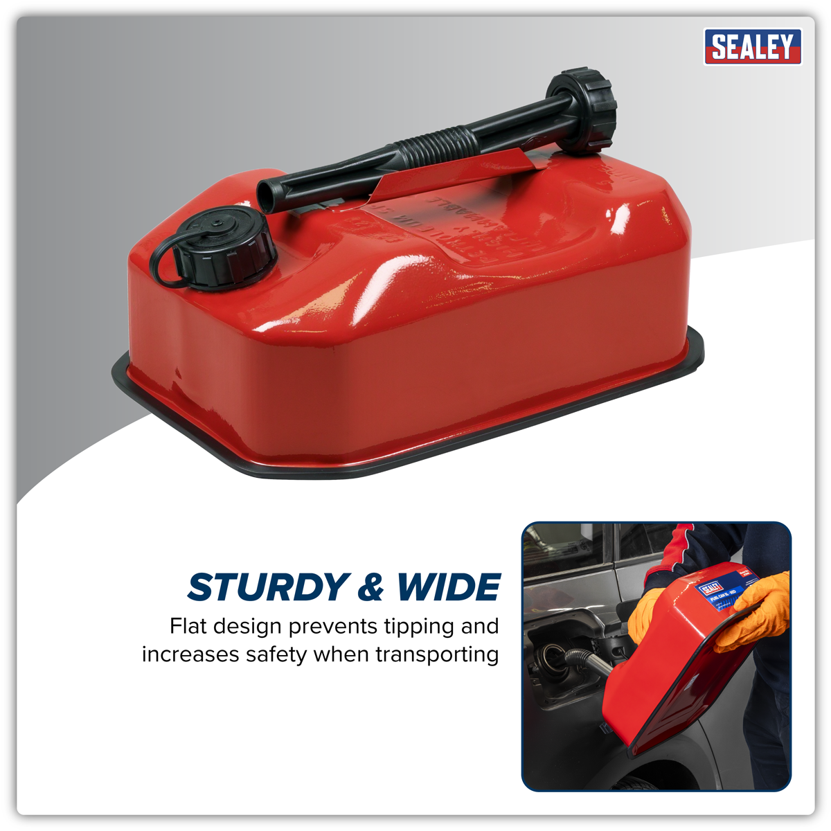 27.08 2026-05-06Wide flat design prevents tipping, making it ideal for transportation. Internal coating protects against corrosion to avoid fuel contamination. Handle design keeps the pouring spout in place when not in use.