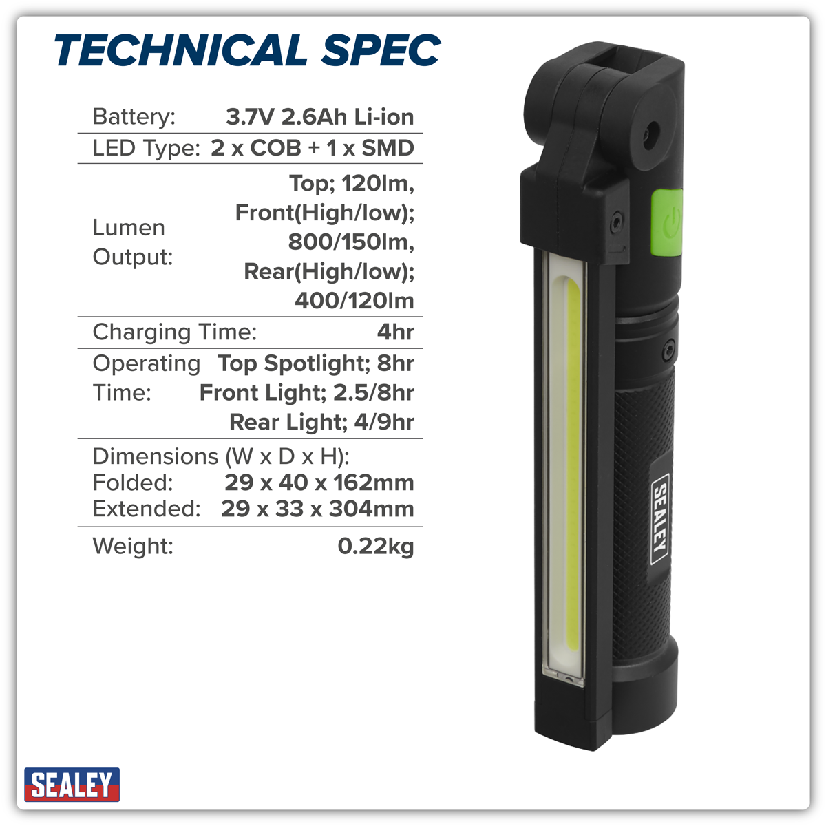Instructions for the Sealey LED02G Rechargeable Aluminium Folding Pocket Light 2 COB & 1 SMD LED