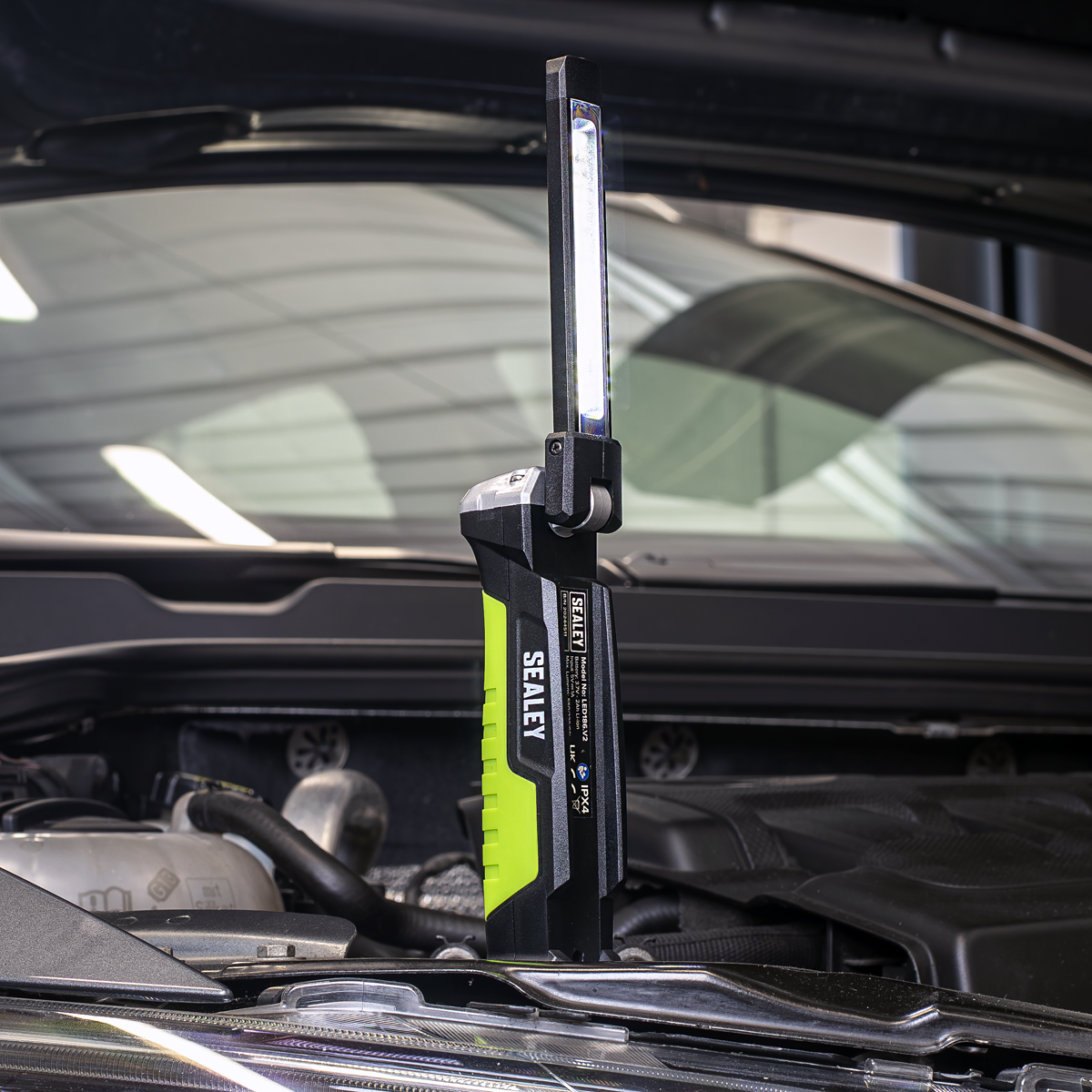 33.02 2026-01-24Slimline foldout inspection light for use in confined spaces with a thickness of just 9mm. Inspection arm can be rotated 180° and folded. Features 6W COB LED, which produces up to 550 lumens and a 1W SMD LED on the end for use as a directional torch. Main light has two different lighting modes High/Low (550lm/220lm) and the SMD spotlight which has one setting at 80lm. Suitable for hands-free operation with a magnet and a hanging hook. Pocket-sized, folds away, small and compact. Powered by a 3.7V 2Ah rechargeable lithium-ion battery, which lasts up to 8hrs. Charges via a USB Type-C cable (supplied).