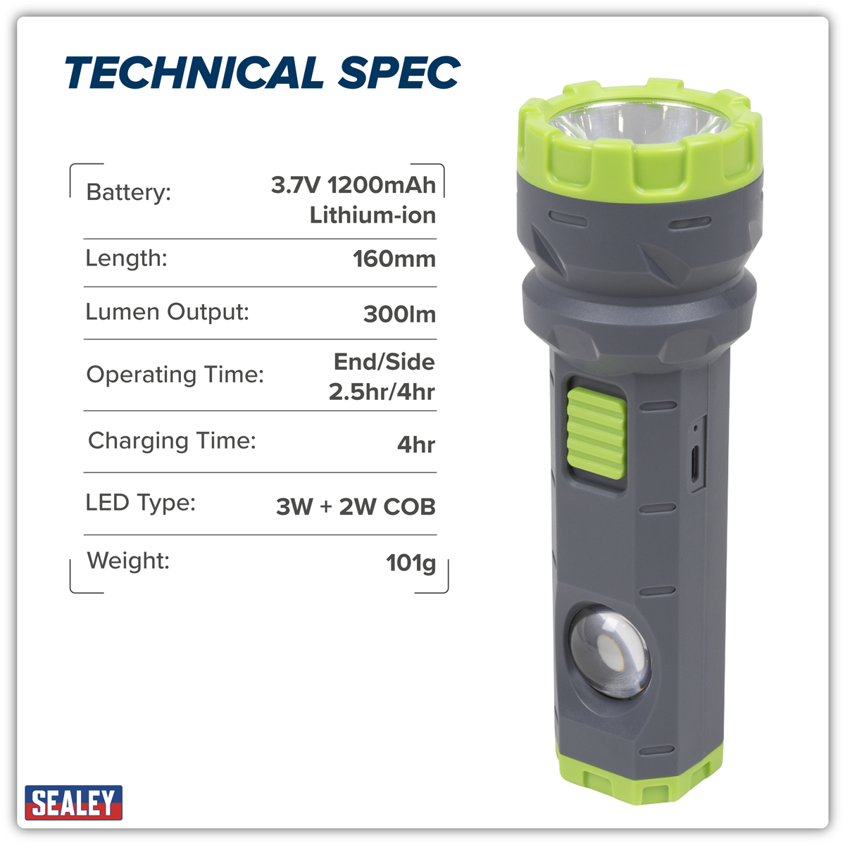 11.96 2026-03-26Switch between spotlight and floodlight with ease. Up to 300 lumens for clear, powerful illumination. Provides up to 4hrs of continuous light. 1200mAh Rechargeable for reliable performance. Beam distance extends up to 200m. Fully recharges in just 4 hours. IP52 rating for dust and light rain protection. Weighs only 101g for easy portability.