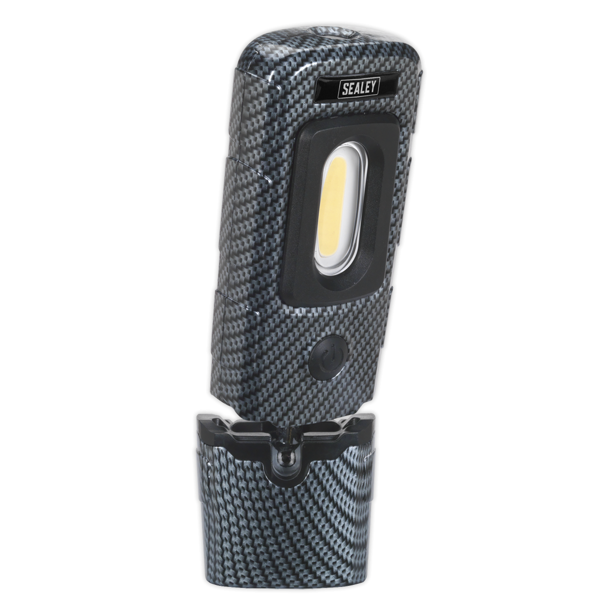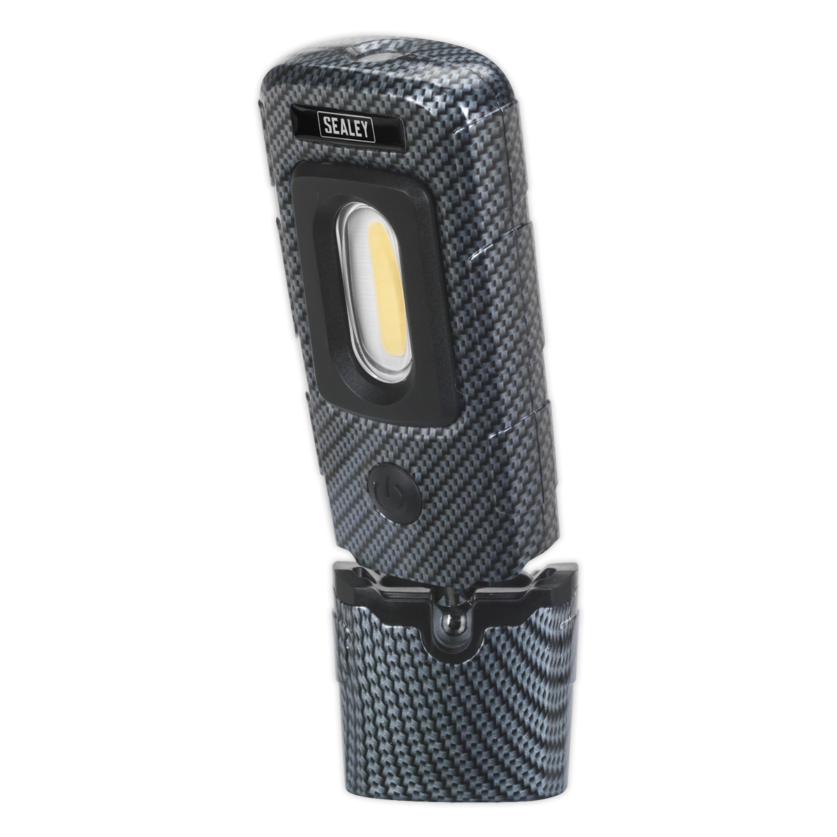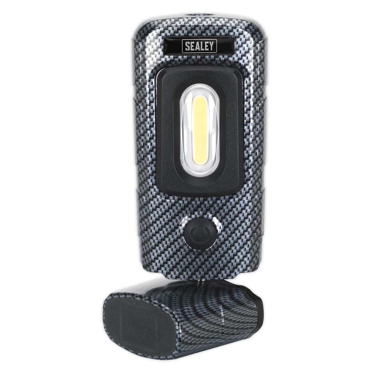 35.66 2026-03-19Mini, lightweight light with exclusive patented design owned by and registered to Sealey. Unique and innovative 360° swivel and tilt function enables the light source to be positioned in any direction. Featuring a super bright 3W COB LED light source, which gives an even and constant spread of light. Produces up to 300 lumens with a CRI-80 rating. Recessed lens for added protection. 1W High power SMD LED directional torch located in top of the light, produces up to 100 lumens. Rubber covered magnet in base and swivel hook for hands-free operation. High quality rechargeable 3.7V 1.5Ah Lithium-Polymer battery for longer life. Supplied with Micro USB cable.