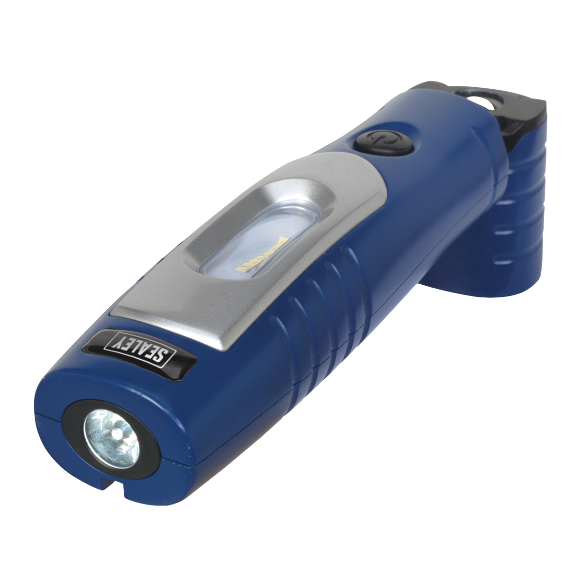 Unique and innovative 360° swivel and tilt function enables the light source to be positioned in any direction. Exclusive patented design owned by and registered to Sealey. 4W SMD LED with magnified lens providing up to 400 lumens output with 120° spread of light, illuminating the whole work area. Includes an additional high power 3W LED directional torch. Features two swivel hooks and three rubber covered magnets, two on the rear and one on the end, which allow hands-free operation. High quality 2.2Ah lithium-ion battery for longer life, no memory effect and a much slower discharge than traditional Ni-MH batteries. Micro USB charging port. Supplied with USB cable.