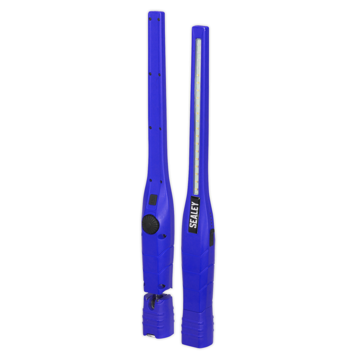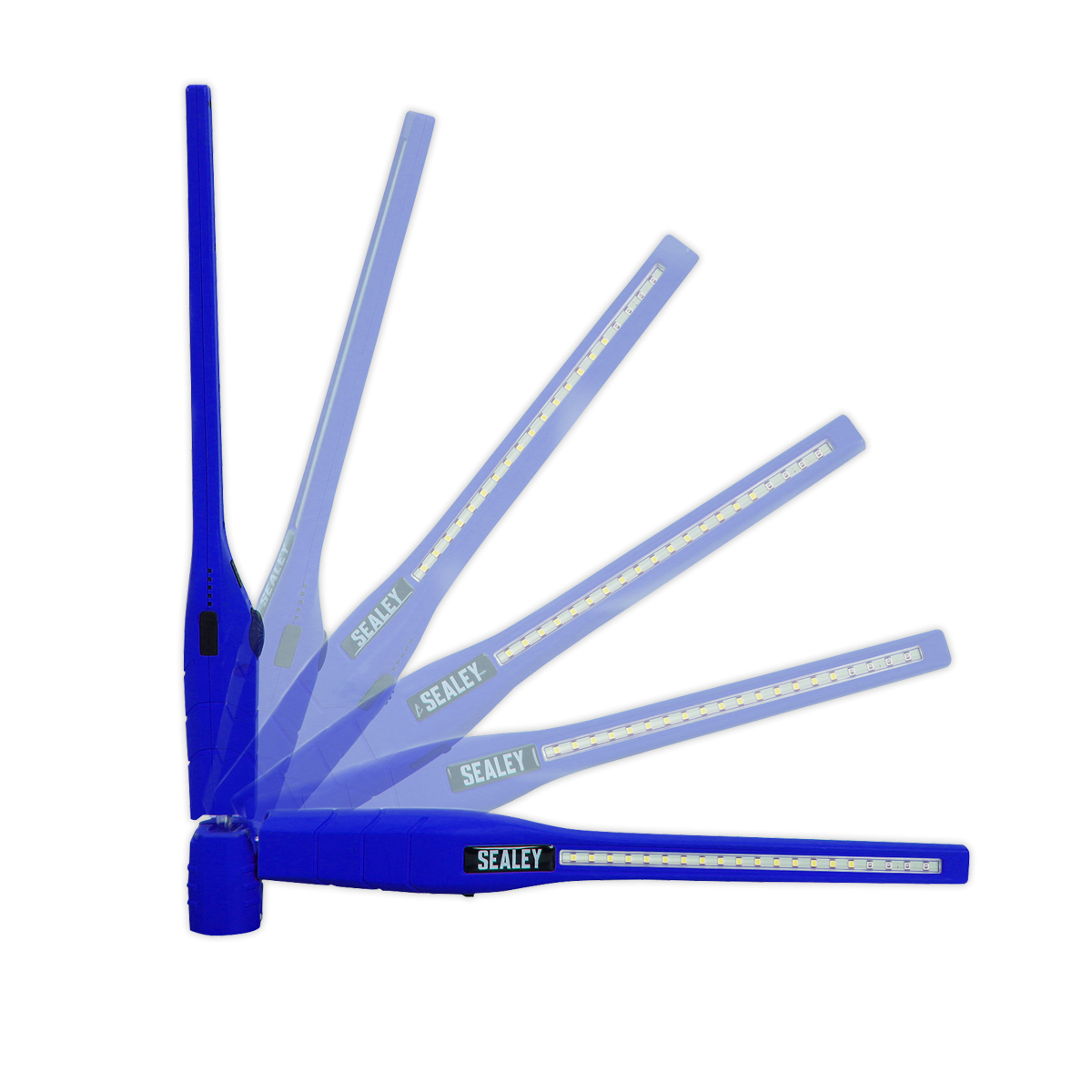 45.44 2026-02-26Unique and innovative 360° swivel and tilt function enables the light source to be positioned in any direction. Exclusive patented design owned by and registered to Sealey. Features super bright 8W SMD LEDs providing up to 600 lumens through the adjustable rotary switch and a 1W LED directional torch. Includes a four LED UV Light. Slimline design with minimum thickness of 9mm. Features a single hanging hook, magnetic base allowing hands-free operation and battery level indicator. High quality 2.6Ah 3.7V lithium-ion battery for longer life, no memory effect and a much slower discharge than traditional Ni-MH batteries. Supplied with a high quality braided USB lead.
