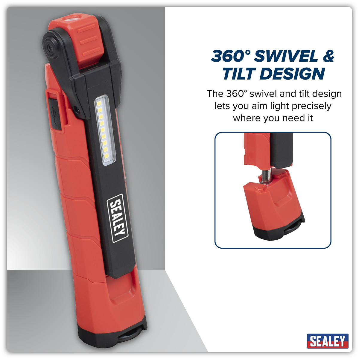 42.08 2025-10-31Unique and innovative 360° swivel and tilt function enables the light source to be positioned in any direction. Super bright 10W SMD LED light produces 1000 lumens and a smaller 4W SMD LED which produces 400 lumens. Includes an additional high power 4W LED directional torch. Features a swivel hook and rubber covered magnet which allow hands-free operation. Rechargeable high quality 3.7V 2.6Ah Lithium-ion battery. LED charge indicator - flashes green for charging and continuous green for fully charged. Inspection arm can be folded 270º. High-impact IK07 Rated. Charges via a USB Type-C cable (supplied).