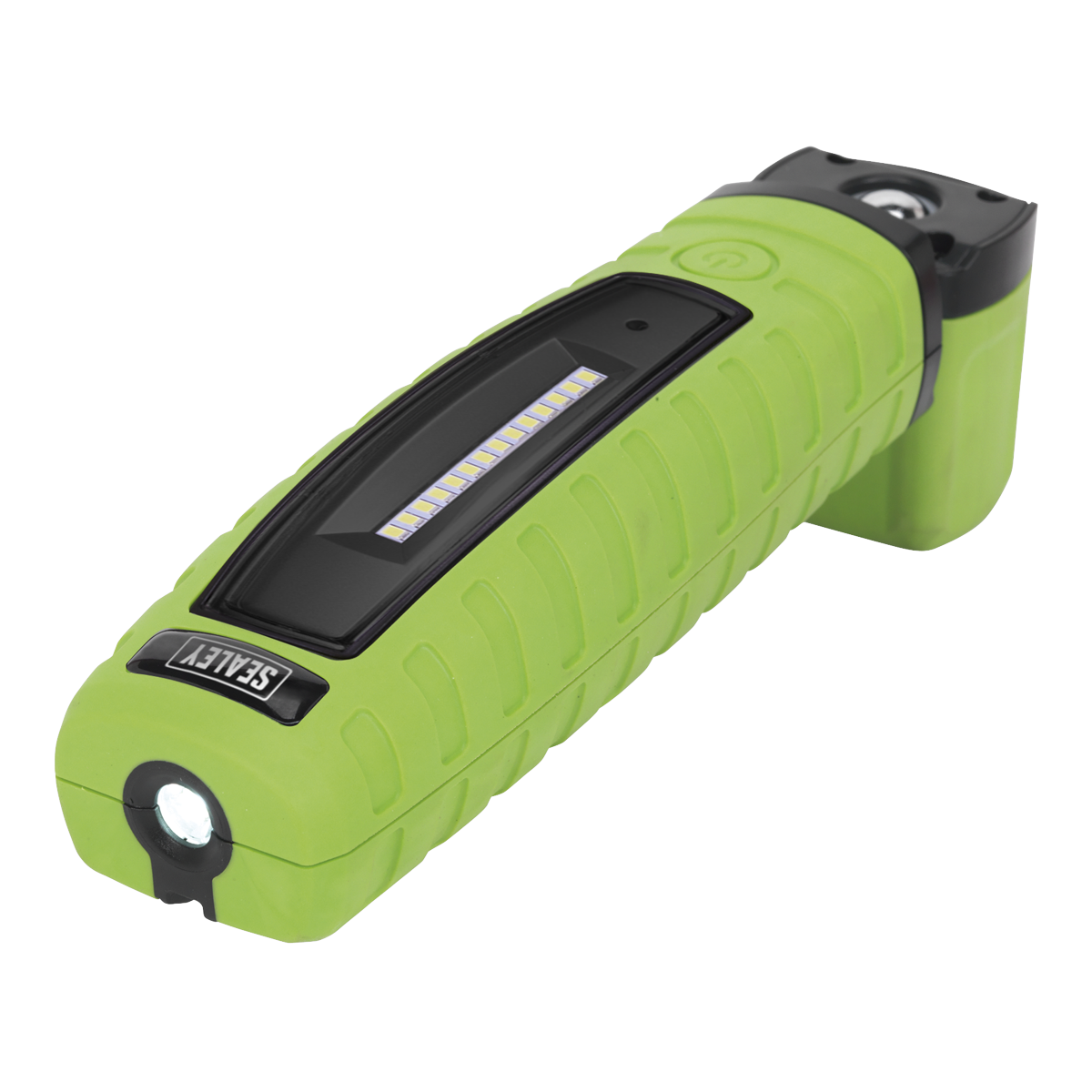 47.96 2025-11-11Unique and innovative 360° swivel and tilt function enables the light source to be positioned in any direction. Exclusive patented design owned by and registered to Sealey. 8W SMD LED providing up to 600 lumens output with 120° spread of light, illuminating the whole work area. Includes an additional high power 3W LED directional torch. Features two swivel hooks and three rubber covered magnets, two on the rear and one on the end, which allow hands-free operation. High quality 2.6Ah lithium-ion battery for longer life, no memory effect and a much slower discharge than traditional Ni-MH batteries. Features a micro USB charging port and supplied with USB charging lead.