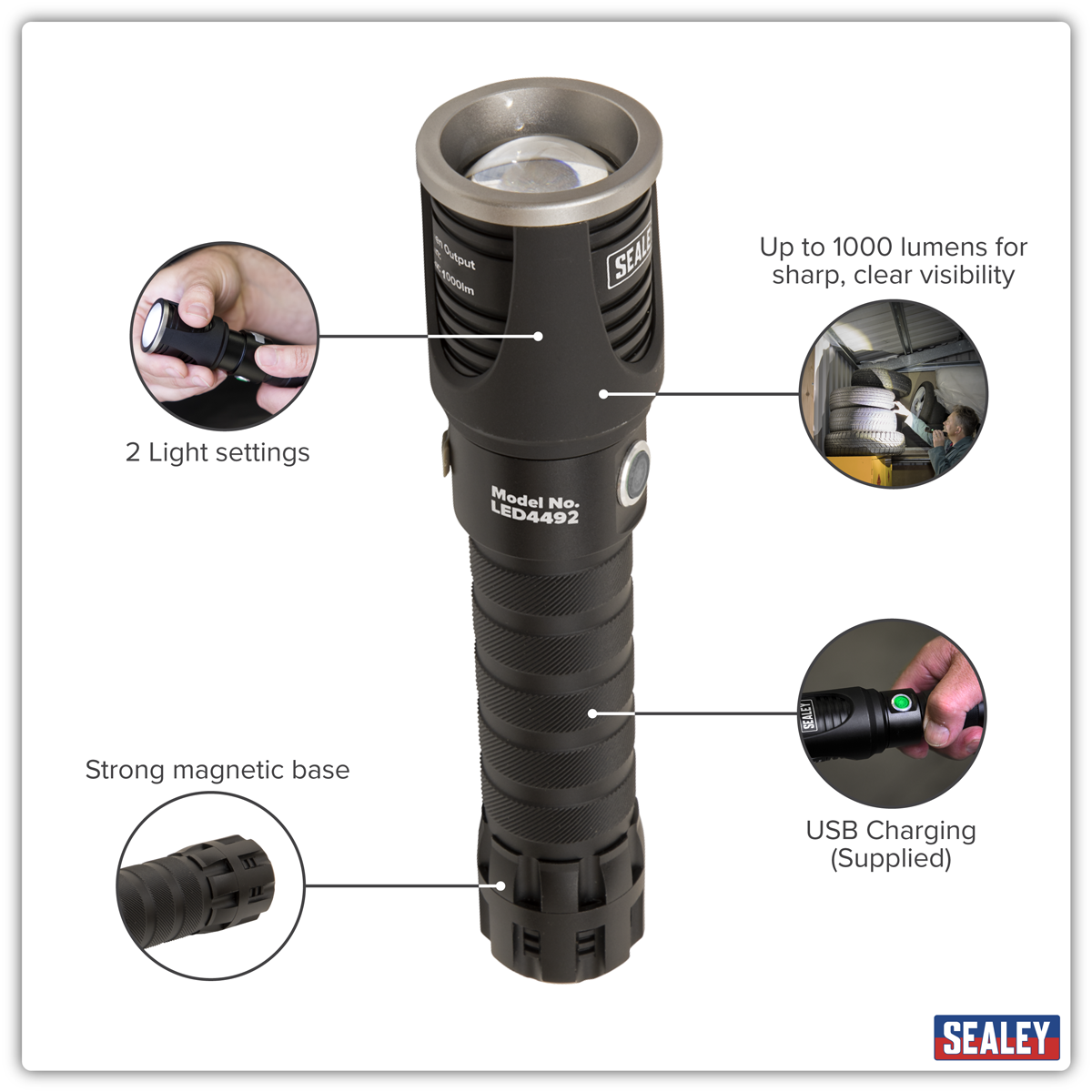 Instructions for the Sealey LED4492 Rechargeable Aluminium Torch with Adjustable Focus 10W SMD LED