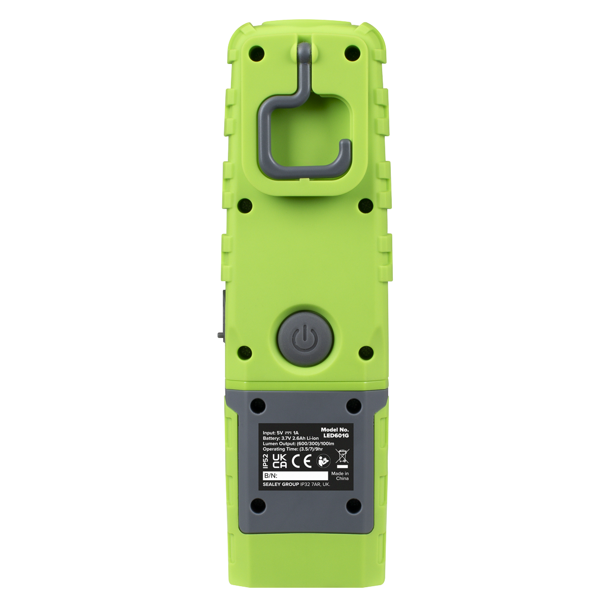 263.96 2025-12-20Super bright 5W COB LED light source producing 600 lumens and 1W SMD LED torch producing 100 lumens of light. Light body twists 360° and light arm tilts 180° to provide light at any angle. Features a swivel hanging hook and rubber covered magnet on the base, which allow hands-free operation. 3.7V 2.6Ah Lithium-ion battery for longer life, no memory effect and a much slower discharge than traditional Ni-MH batteries. Long operating time of 3.5hr at 600 lumens. Charges via a USB Type-C cable (supplied). Supplied in a display box of 12.