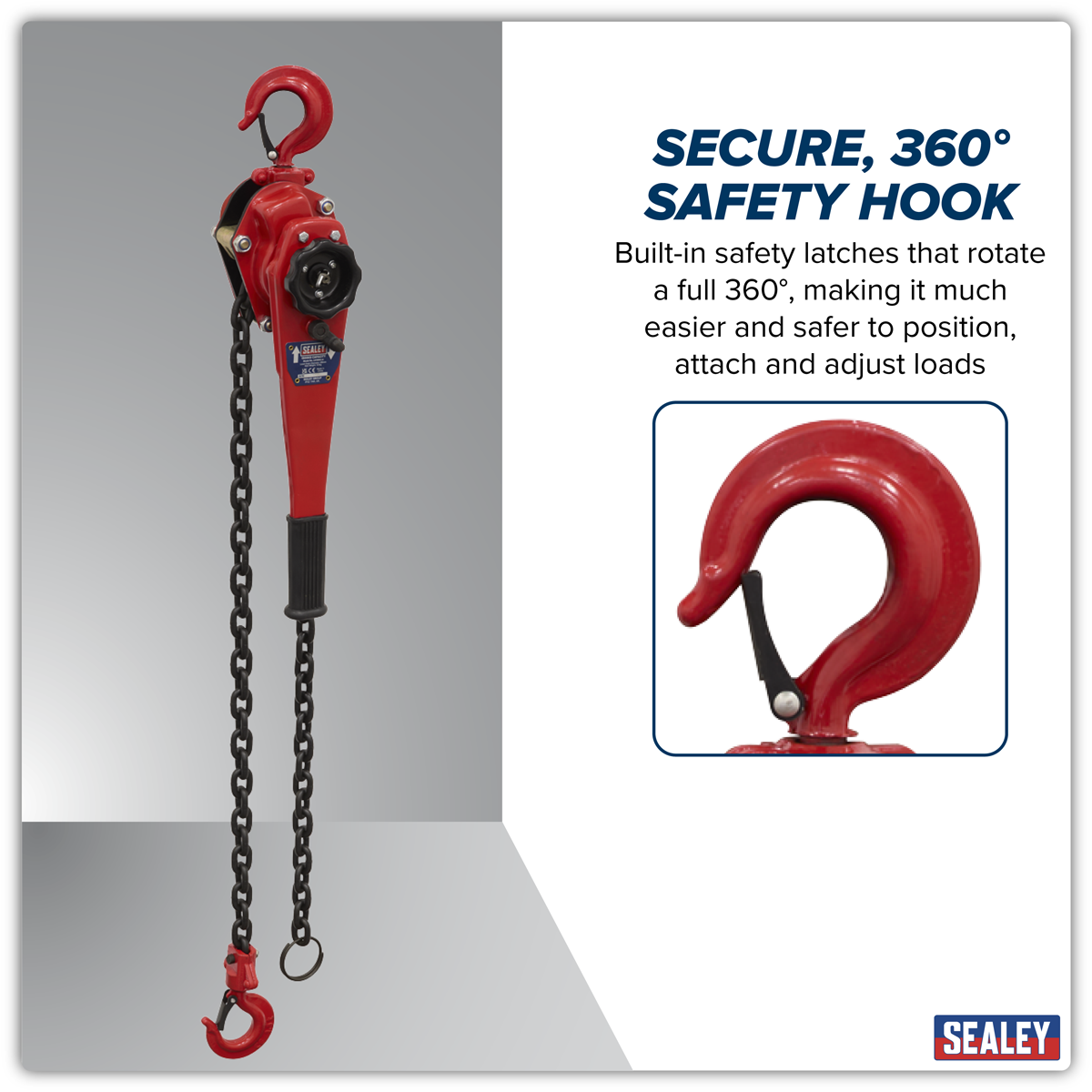 179.95 2026-04-13Rugged construction features drop-forged and heat treated pinion gear with totally enclosed mechanisms. Equipped with heavy-duty brake and high quality alloy steel chain. Hooks fitted with safety latches and rotate 360°. Free-chaining feature permits slack in the load chain to be taken up by hand before engaging the ratchet arm. Provides total control on the load position.