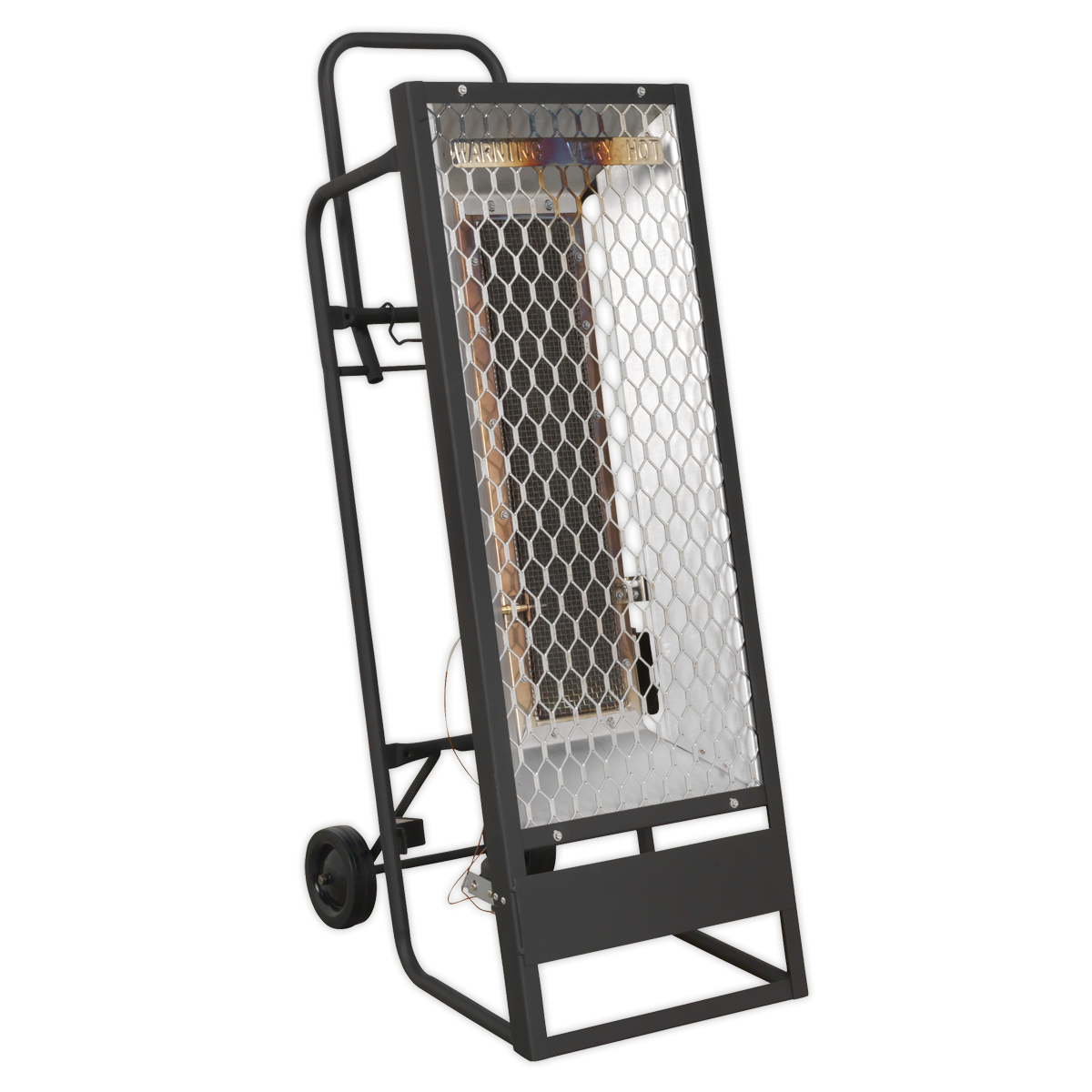 215.35 2026-01-17Industrial heater suitable for well-ventilated applications. Reaches maximum heat output within seconds of being turned on. Highly portable, no power supply required, just connect to gas bottle (not included). Heavy-duty frame and steel mesh guard with durable paint finish. Fitted with a piezoelectric ignition system for trouble-free starting. Features safety thermocouple, flame failure valve and tip-over switch. Super quiet operation, includes no moving parts. Supplied with an approved propane gas regulator and hose. Tested and certified to CE/EN standards.