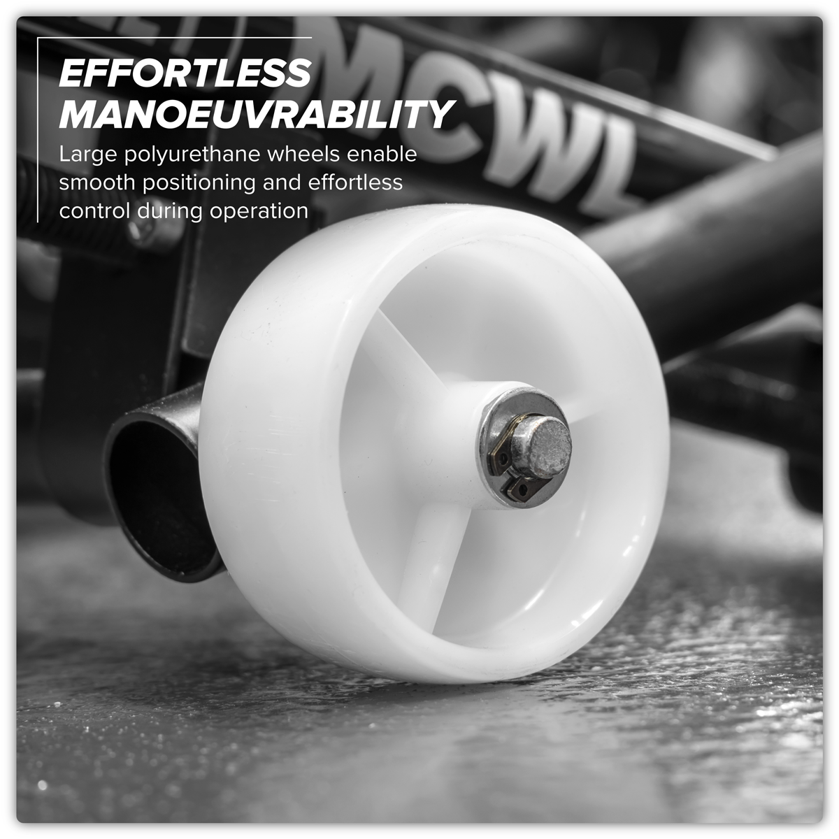 70.76 2026-04-21Holds the wheel in position for axle maintenance or replacement. Integral rollers allow smooth raising and lowering of the wheel during axle alignment and the simple placement of spacers and axle components. Fine rolled thread for precision height adjustment. Powder paint coated steel pipe frame. Smooth manoeuvrability and positioning using large polyurethane wheels.