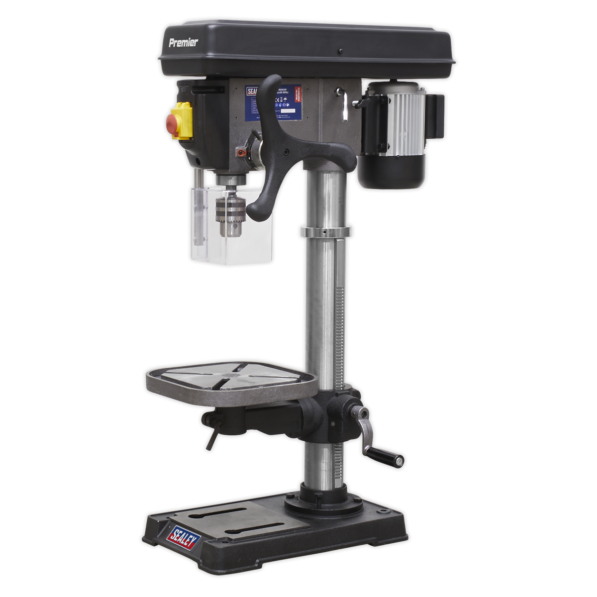 527.35 2025-11-10One of a comprehensive range of Premier bench mounting pillar drills for the professional workshop. Features heavy-duty aluminium-bodied motor for long and reliable performance. No-volt release switch to prevent inadvertent start-up and pulley cover protected by microswitch to prevent drill operating when cover is open. Fitted with an integral work light which illuminates the drilling table giving operator a clear view of the drilling process (bulb not included). Supplied with an electrically inter-locked chuck guard. Large sized square table fitted with precision rack and pinion height adjustment.