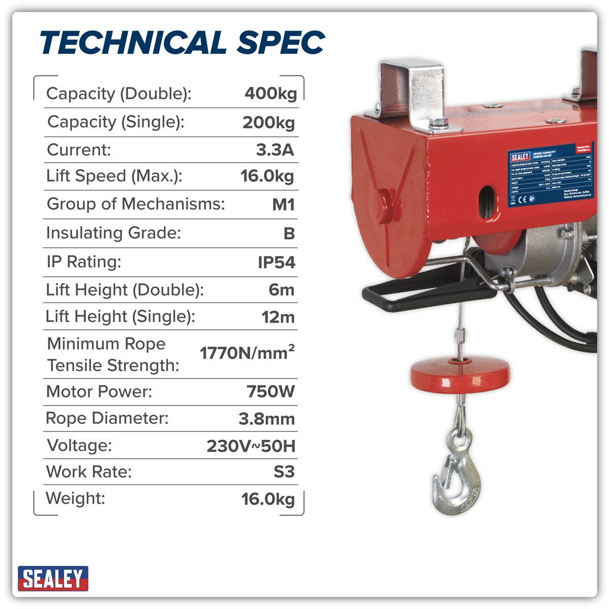Instructions for the Sealey PH400 Power Hoist 400kg Capacity 230V