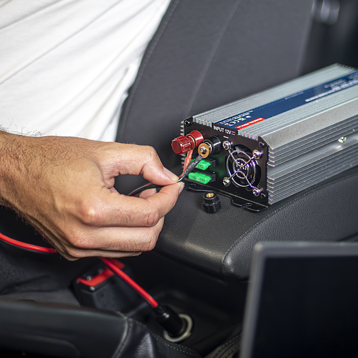 88.16 2026-04-11Supplies continuous smooth 230V power from 12V DC power supply found in cars, caravans, boats and commercial vehicles. Suitable for powering small TVs, laptops, power tools and various other electrical equipment rated under 500W (maximum under load). Features USB port (5V⎓2.1A) for use on various domestic electronic equipment such as digital cameras and mobile phones. Aluminium case provides durability and maximum heat dissipation. Safety features include automatic overload shut-down, short circuit protection, low voltage alarm, low voltage shutdown and overheat shutdown. Supplied with battery clips.