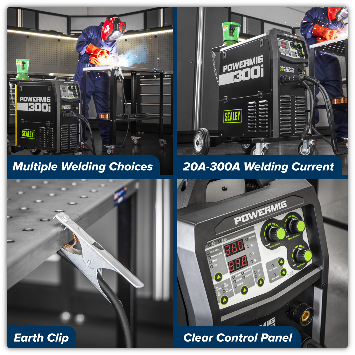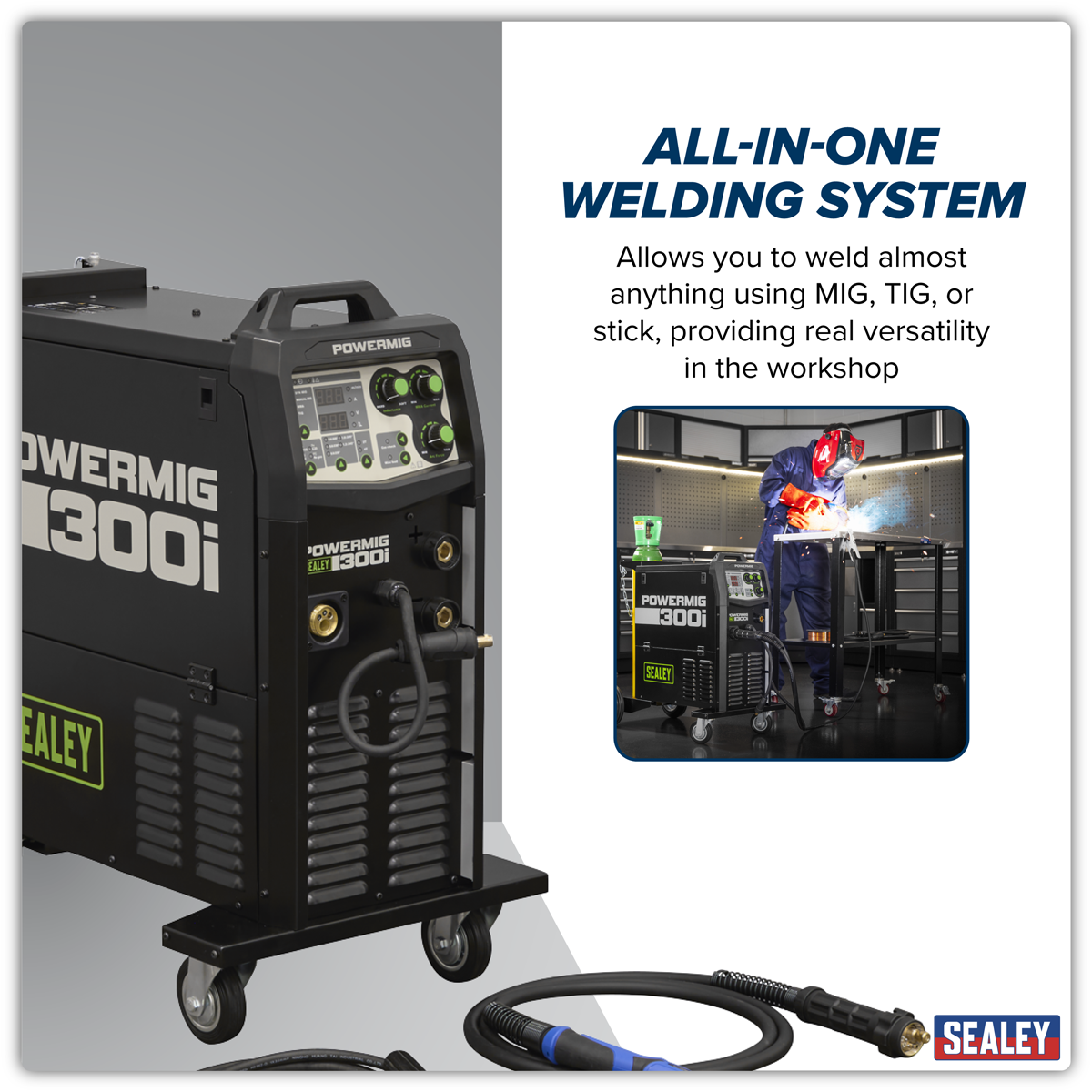 1589.95 2026-04-16Multi process IGBT inverter Gas/Gasless MIG/TIG/MMA welder suitable for professional fabricators and workshops, as well as mechanics and technicians. Maximum output of 300A making it ideal for welding a large variety of metals including steel, stainless steel, aluminium up to 12mm. 2T/4T Torch trigger function allowing greater precision during longer welds. Easy-to-read digital amp and volumeter display. Features short circuit, over-heating and over-current protection. Large rear wheels with low gas cylinder tray for ease of loading and maximum stability. Supplied with 2m power cable, 2m earth clamp, Euro non-live MIG Torch and 2m Electrode holder.