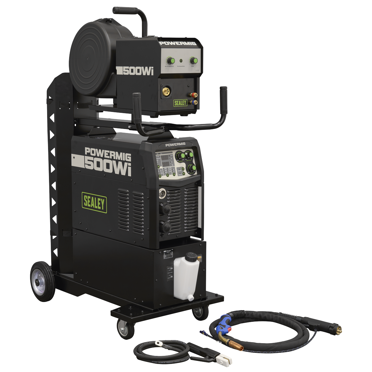 2075.95 2026-01-24Multi process IGBT inverter Gas/Gasless MIG/TIG/MMA welder suitable for professional fabricators and workshops, as well as mechanics and technicians. Equipped with a portable wire feeder enabling access into high or tight spaces that would otherwise be difficult to reach. In-built water cooler allows the torch to remain cooler for longer enhancing efficiency and productivity. Maximum output of 500A making it ideal for welding a large variety of metals including steel, stainless steel up to 20mm. 2T/4T Torch trigger function allowing greater precision during longer welds. Supplied with 2m power cable, 2m earth clamp, 3m Euro non-live MIG torch and 2m Electrode holder. Wire capacity of 5-15kg with a diameter of 0.6mm to 1.6mm. Electrode capacity from 1.6mm to 5mm. Duty Cycle: MIG 60% @ 500A, MMA 60% @ 500A, TIG 60% 500A. POWERMIG500Wi is also supplied with a water cooler to prolong duty cycle and efficiency.