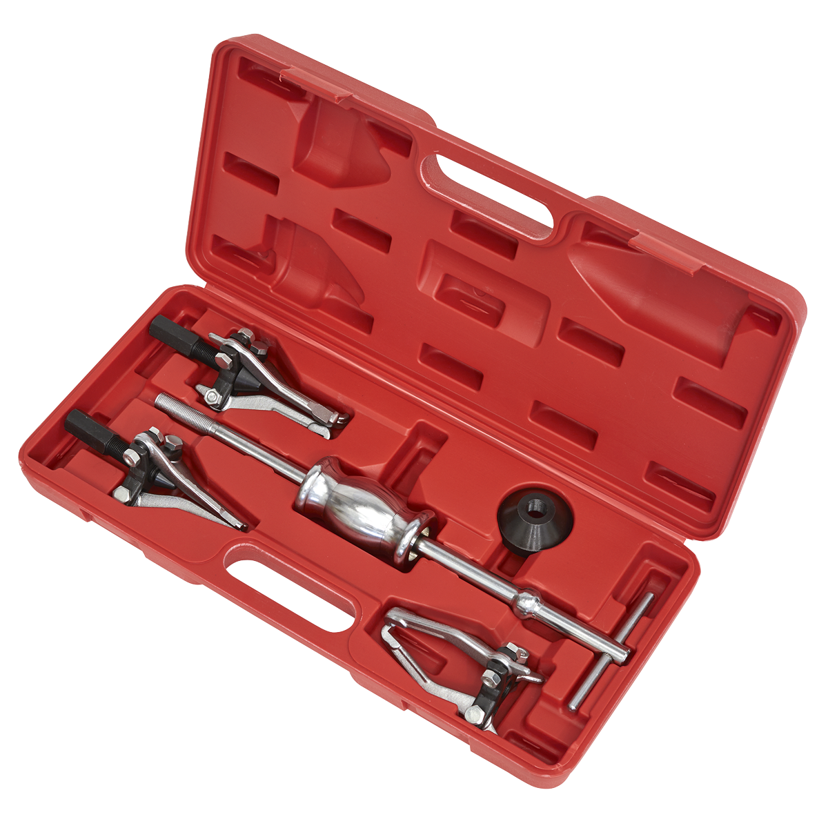 183.92 2026-04-24Drop-forged Chrome Vanadium steel puller arms with locking/gripping feature. Set includes threaded nut and three sets of 100mm triple leg pullers with locking features which clamp the jaws firmly inside/outside the gear or bearing. Includes 1.2kg slide hammer. Supplied in storage case.