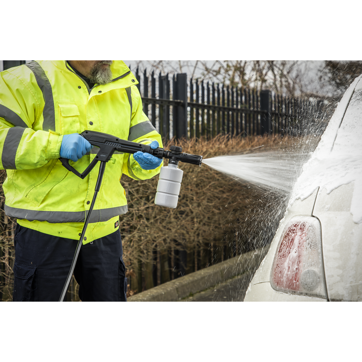 103.76 2026-04-29Ideal for cleaning vehicles, machinery, as well as patios and other outdoor surfaces. Brass quick release system allows for fast selection between nozzles and allows compatibility across the Sealey range of pressure washers and accessories. Pressure gun includes lock to avoid accidental start. 1200W Motor produces up to 100bar of pressure with an impressive 390L/hr flow rate. Automatic Total Stop System (TSS) which switches the motor on and off when the trigger is operated, prolonging motor life. Self-priming motor can be used with a still water source for maximum portability. Supplied with 5m pressurized hose for ease of use and 5m power cable for extended reach. Supplied with Rotablast® nozzle, snow foam gun, adjustable fan nozzle and set of four interchangeable nozzles (0°, 15°, 25° and 40°) supplied on a lance storage sleeve.