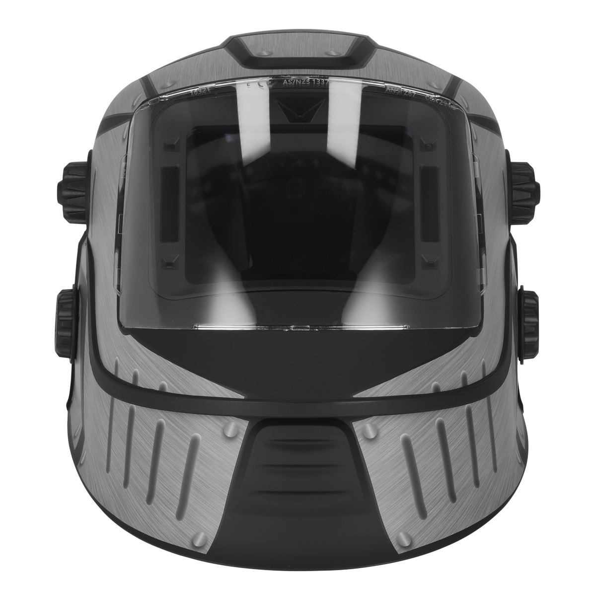 104.36 2025-11-12Fully digital flip-up welding helmet and true colour technology give the best possible welding and grinding experience. Featuring an auto darkening lens and separate clear grinding shield. For non-welding tasks simply flip-up the lens and flip back down when welding or cutting. Self-locking in the upright position making non-welding tasks easier. High quality variable shade 9-13 lens manufactured and tested to ISO 16321. Fully automatic switching from light to dark on striking arc. Digital control panel easily switches between modes and set delay, sensitivity and shade settings. Also includes memory-save function to preset and save up to nine personalised settings. Battery is easily replaceable but has solar back up to prolong the battery life. Suitable for MIG, TIG, arc/MMA, gas welding, cutting and grinding.