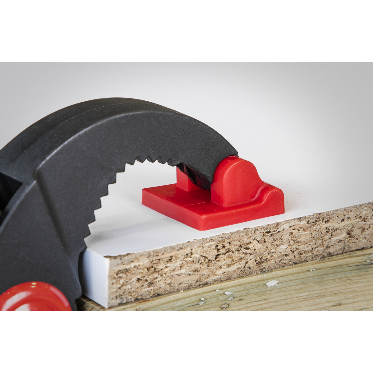 22.70 2025-11-06Quick ratcheting clamps with easy release trigger. Manufactured with a nylon body, TPR handle and textured pads. Free-moving pads enable clamping at multiple angles. Features maximum jaw opening of 45mm.
