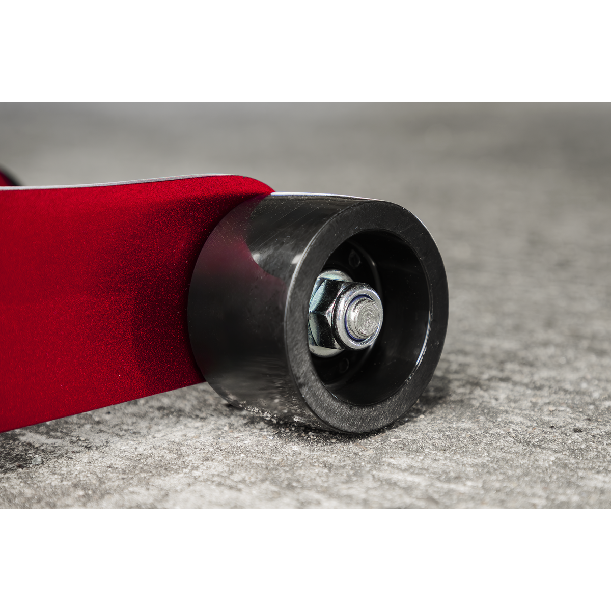 251.36 2025-11-02Made primarily for the motor racing enthusiast, this jack weighs in at just 17.6kg. Utilises many weight saving techniques such as a skeletal lift arm. Features Rocket Lift by use of twin pistons, bringing saddle to maximum height in minimal pumps. Polyurethane wheels for smooth and quiet manoeuvring, which also limits damage to garage floors. Lifting bars are fitted either side of the anodised aluminium chassis enabling fast, lightweight pick-up.