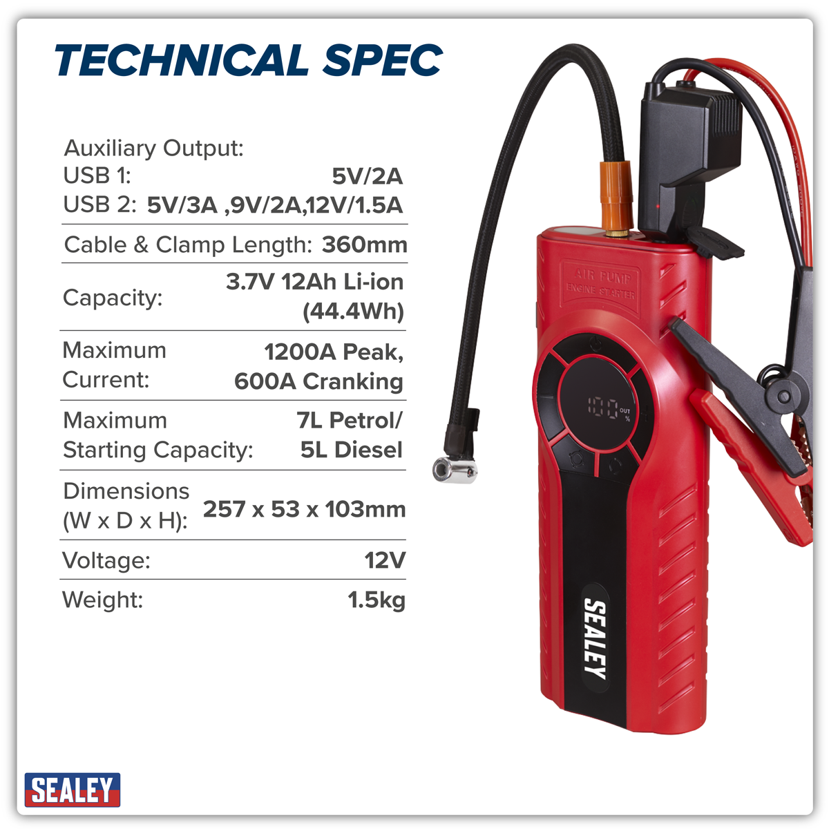 Instructions for the Sealey RS1200TI RoadStart® 12V Jump Starter & Tyre Inflator 1200A