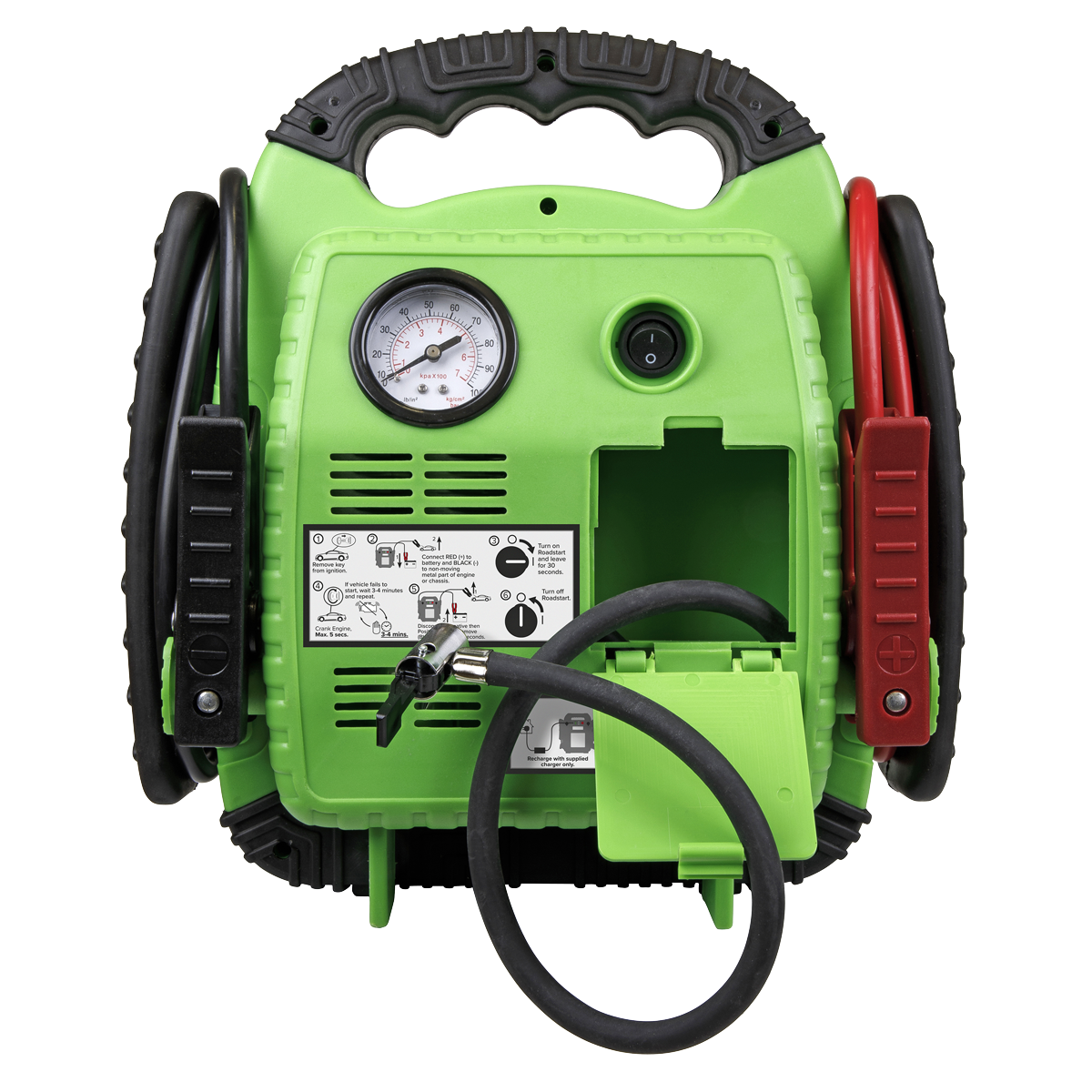122.36 2025-12-21Composite case with moulded rubber protection, integral battery cable storage and carry handle. LED Battery condition, polarity check, with audible warning if polarity is reversed, and charge indicators. Features independent on/off switch which allows the positive clamp to be connected without the risk of sparking and an integral LED worklight for use at night. Also features integral air compressor with pressure gauge for accurately topping/pumping up tyres. Fitted with two 12V power sockets that will accept any 12V device fitted with a vehicle accessory socket plug. Also features a USB outlet (5V⎓1A). Supplied with mains charger.