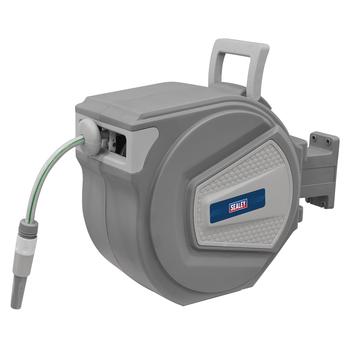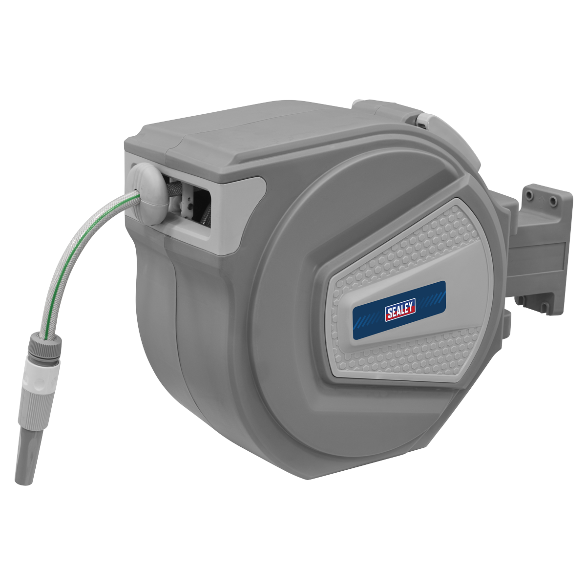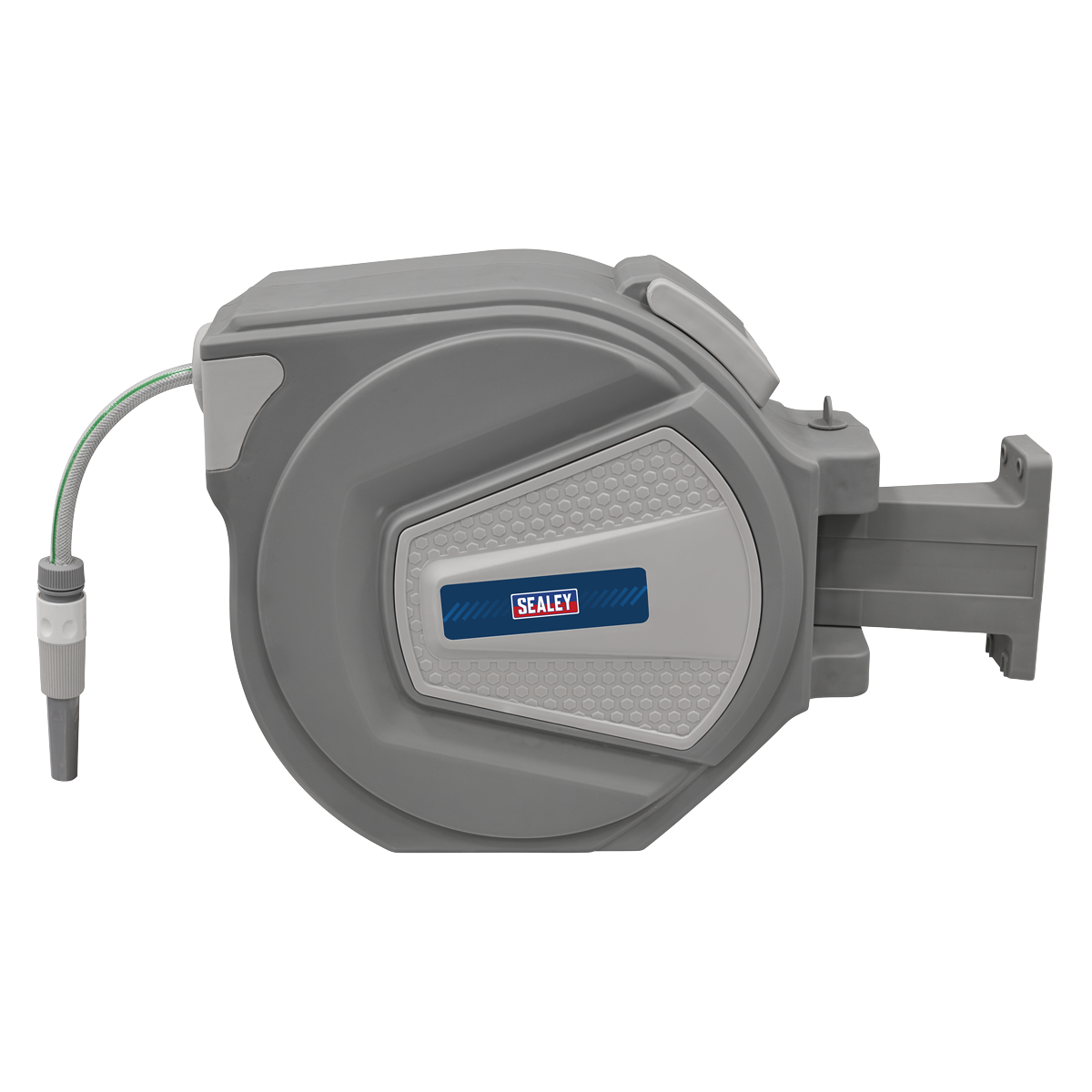 133.15 2026-05-19Composite housing with heavy-duty wall mounting swivel bracket. Fitted with 20m Ø13mm PVC garden hose with spray/jet nozzle. Hose can be extended and stopped at any length. Controlled, slow rewind which, unlike traditional retractable reels, returns the water hose at a safe speed. Auto layering mechanism distributes water hose evenly back into reel housing preventing it from jamming. Supplied with 2m leader hose with quick coupler and tap connector.
