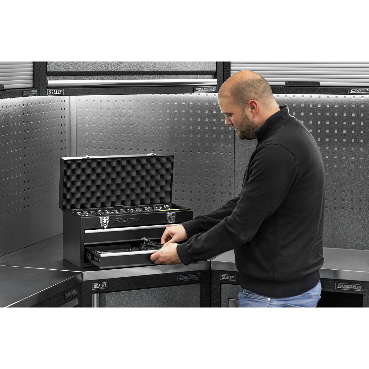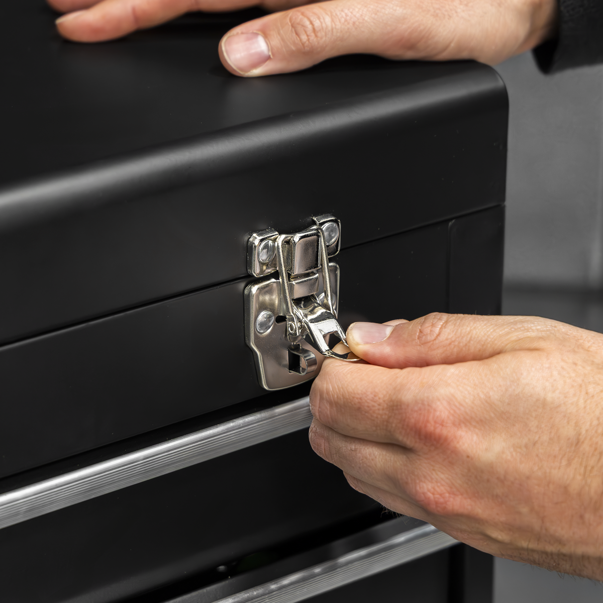 194.96 2025-12-01Comprehensive range of frequently used hand tools with 1/4" and 1/2"Sq drive reversible ratchet wrenches. Includes 1/4" and 1/2"Sq drive sockets, hex keys, combination spanners, screwdrivers, bit set and accessories. Tools feature soft grip handles for comfort and control. Supplied in a sturdy, fully portable metal tool chest with EVA foam storage trays.