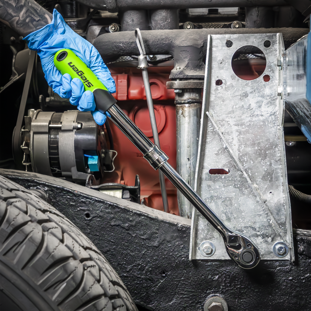 44.98 2026-01-031/4", 3/8", 1/2"Sq Drive Chrome Vanadium steel extendable ratchet wrenches. 72-Tooth ratchet action with flip reverse and quick release mechanism. Hardened and tempered with fully polished mirror finish. Quick release locking ring retains extension at set increments, giving different shaft lengths for increased access in space restricted applications. Soft grip handle for added comfort and control. Supplied in EVA foam storage tray. Note: These tools are manufactured in accordance with DIN standards and are designed for improved access, not excessive torque. Misuse will invalidate guarantee.