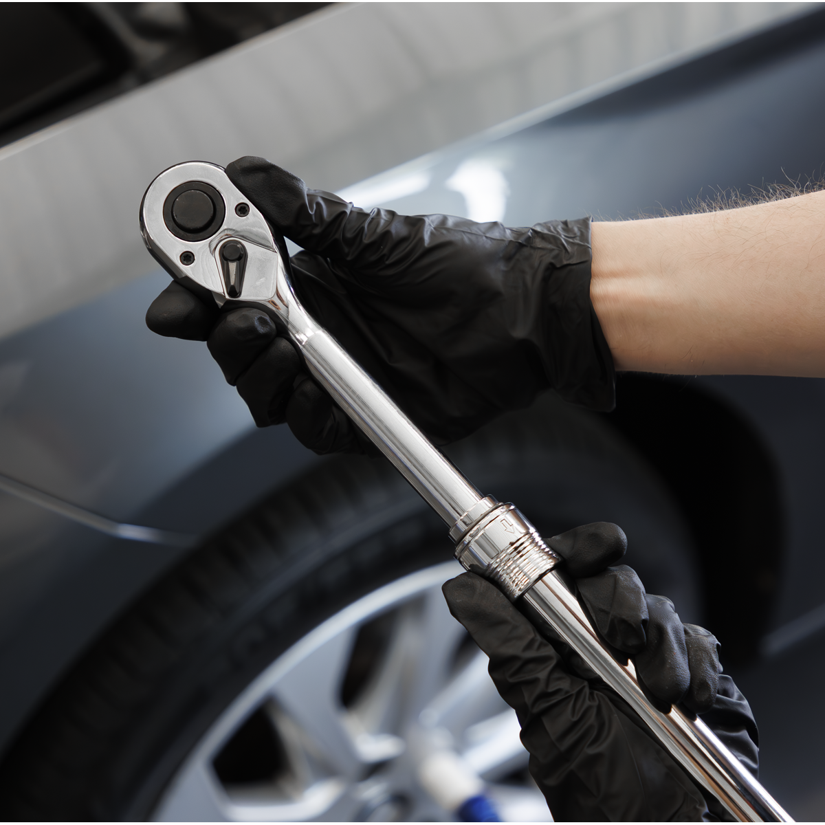 22.78 2025-11-22Chrome Vanadium steel, 72-tooth ratchet wrench, hardened and tempered with a fully polished mirror finish. Quick release locking ring retains extension at set increments, giving five different shaft lengths (460-610mm). Soft grip handle for added comfort and control. Pear-head design with flip reverse mechanism and push-button quick release. Note: These tools are manufactured in accordance with DIN standards and are designed for improved access, not excessive torque. Misuse will invalidate guarantee.