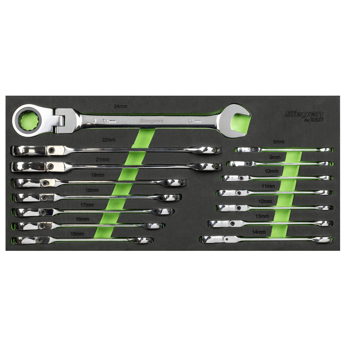 95.96 2026-05-05Manufactured from hardened and tempered Chrome Vanadium steel with a fully polished mirror finish. Flexi-head design improves access in restricted areas. 72-Tooth ratchet and gear set requires only 5° rotation to pick up the next tooth. Supplied in EVA foam storage tray.