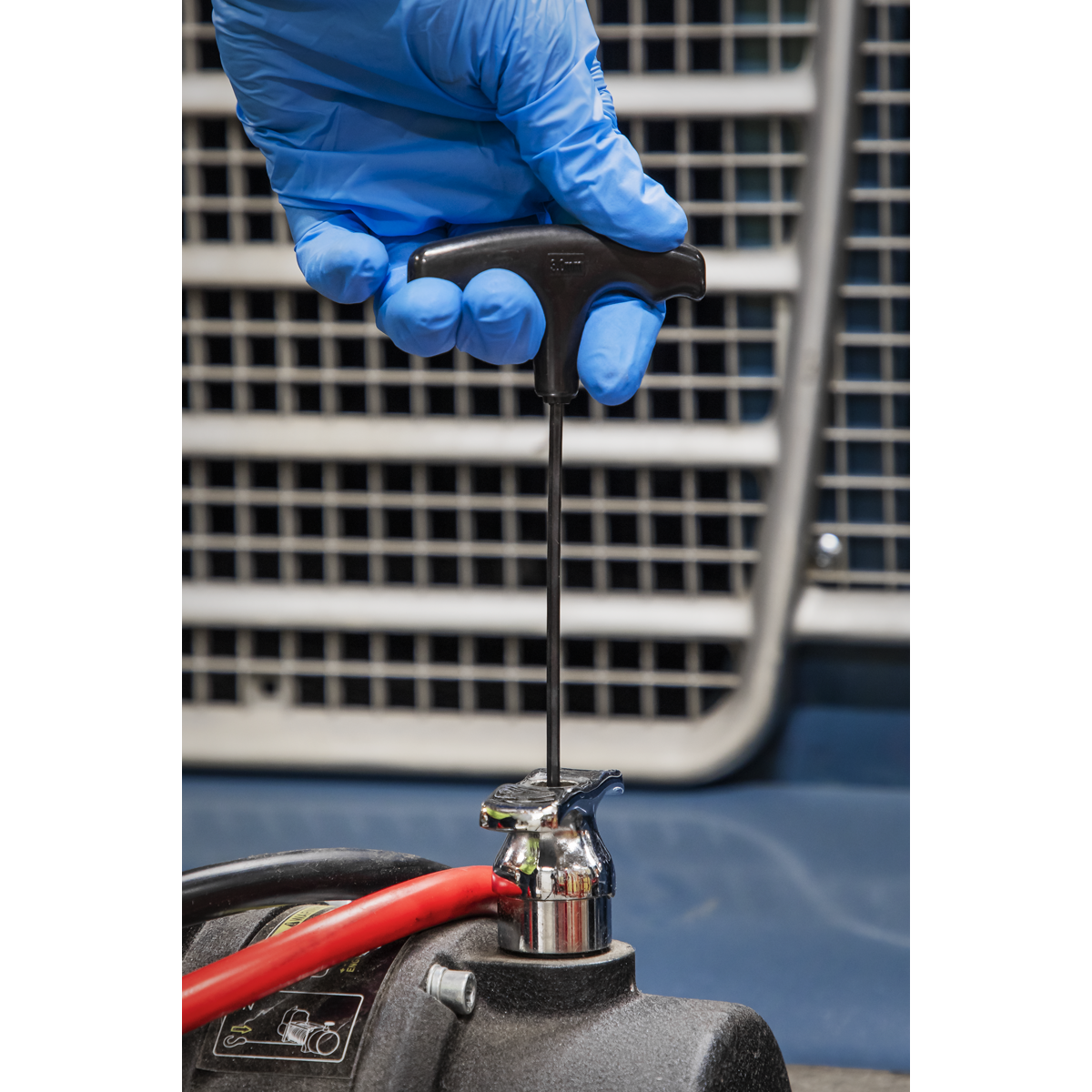 16.18 2026-05-23Chrome Vanadium steel. T-Handle design increases turning power and provides a sure, comfortable grip. Ideal for home, shop, workplace and workbench. Includes metal stand suitable for wall mounting.