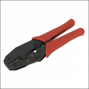 22.70 2026-01-17All steel construction with vinyl grip handles and hardened and tempered jaws. Ratchet action ensures consistent crimp tension.