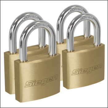 19.78 2026-01-17Pack of four extruded brass body padlocks with hardened and plated steel shackles. Brass cylinder with twin bar locking mechanism. All four padlocks feature the same cylinder identification, so any one of the 12 keys supplied will fit each padlock within the pack. Specification as Model No. S0987, see XXX.