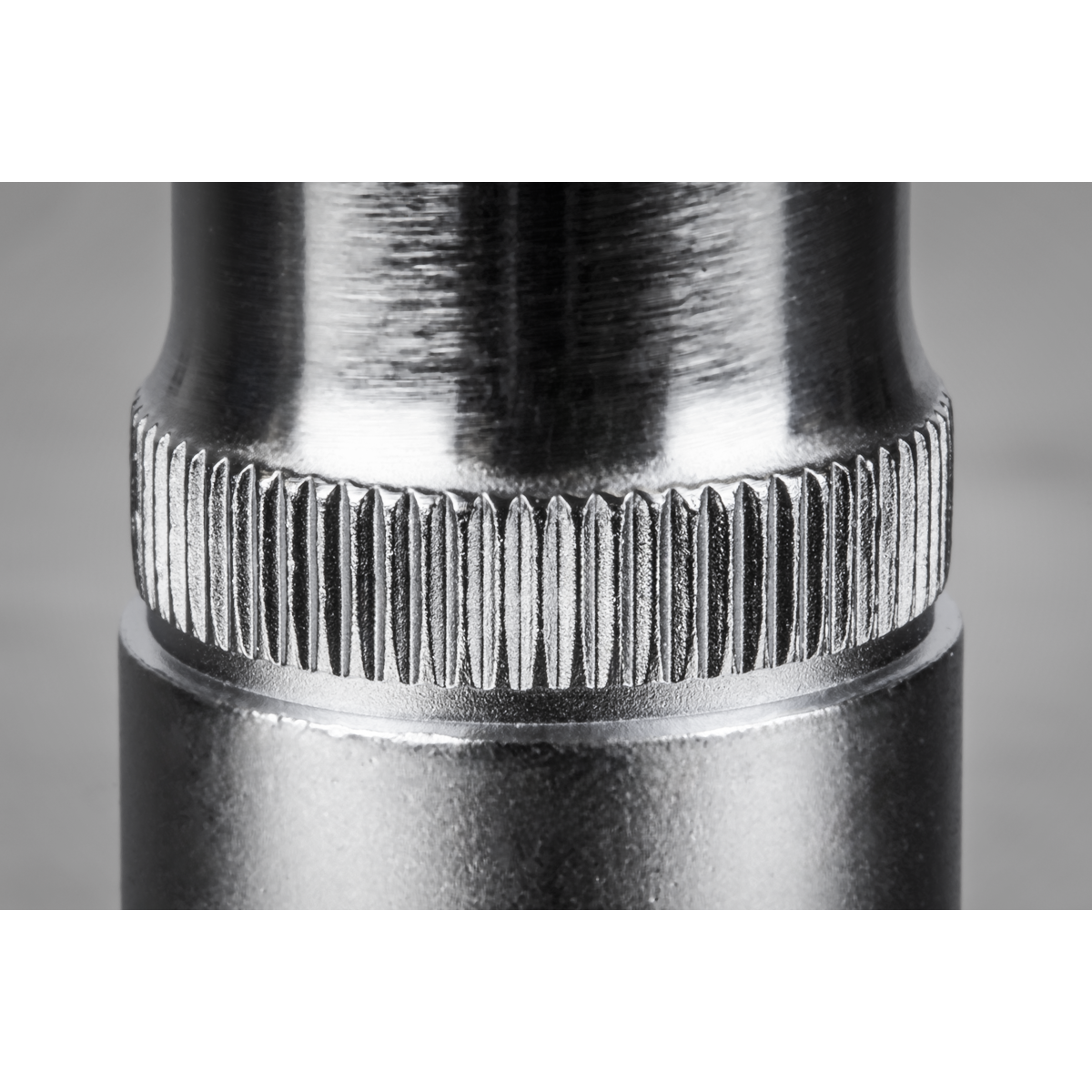 8.20 2026-01-29Cold-forged Chrome Vanadium steel socket. Hardened and tempered for added strength. Chrome plated in half chrome, half satin finish with knurled ring for extra grip with oily fingers. WallDrive® socket configuration.