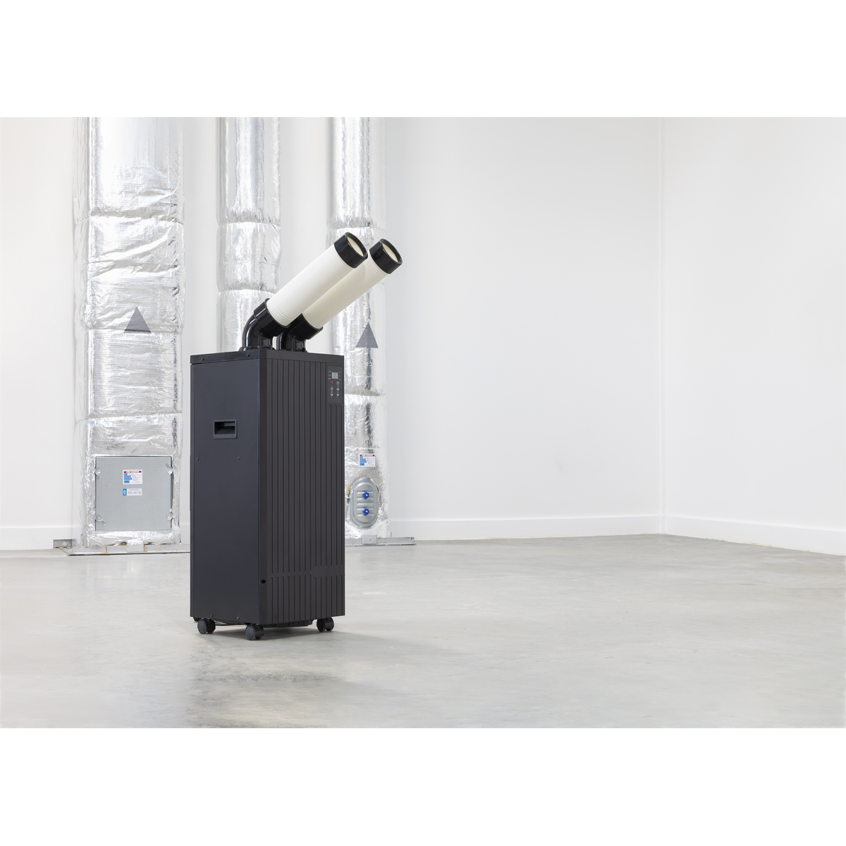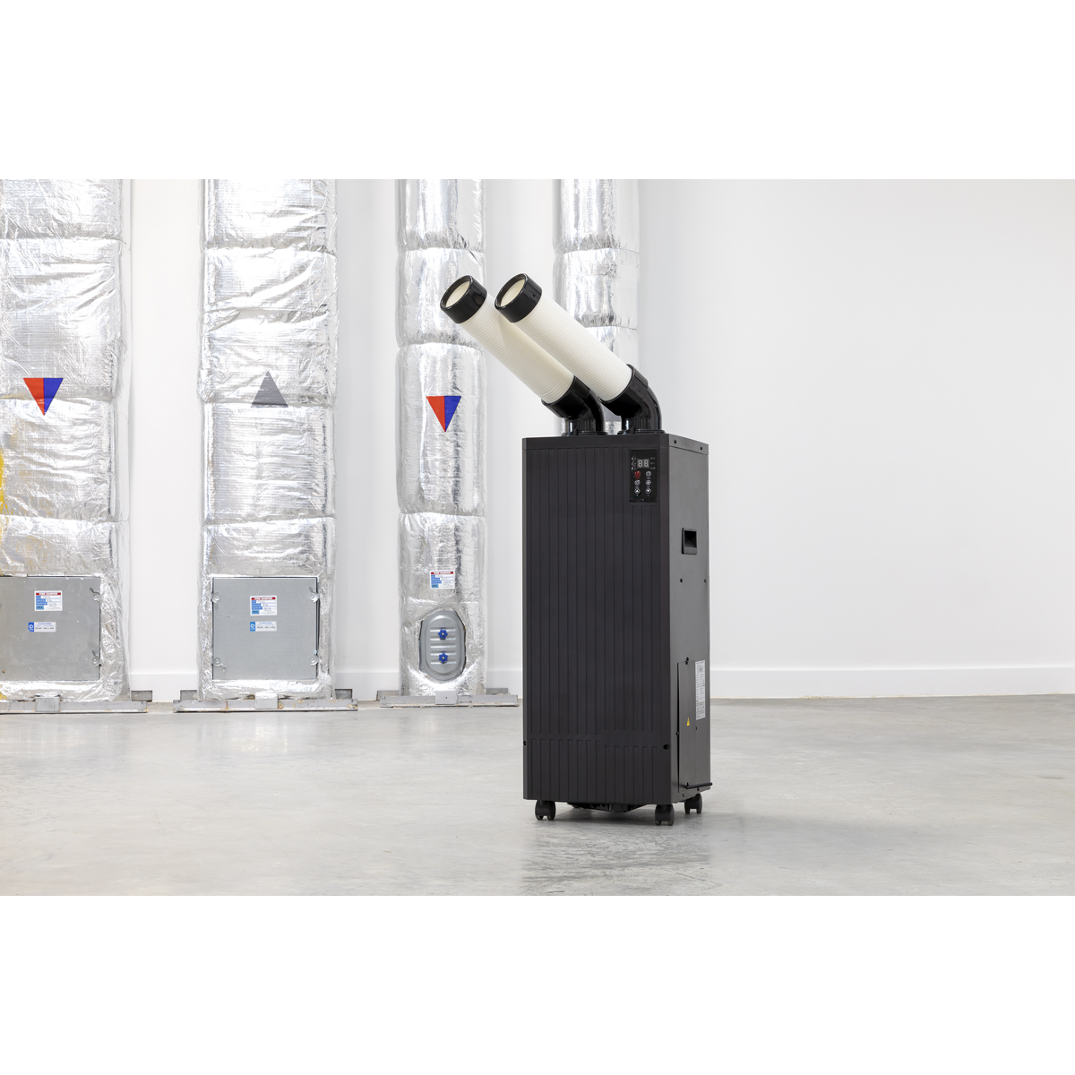 635.96 2026-05-17Industrial 3-in-1 portable Spot Cooler, delivering 8,500/hr(2.5kW) air conditioning, ventilation and dehumidifying functions. Touch control panel with LED digital screen, 24-hour timer and clear ambient temperature display. Two wind speeds enabling efficient cooling in industrial, warehouse, office and garage environments. Self-evaporating system for improved efficiency coupled with R290 refrigerant reducing environmental impact. Two 360° swivel ducts for targeted airflow suitable for work areas that are 8–18m². Air conditioning capability operating between 18-45°C. Washable air filter supporting consistent performance. Castor-mounted design ensuring smooth manoeuvrability in a busy areas.