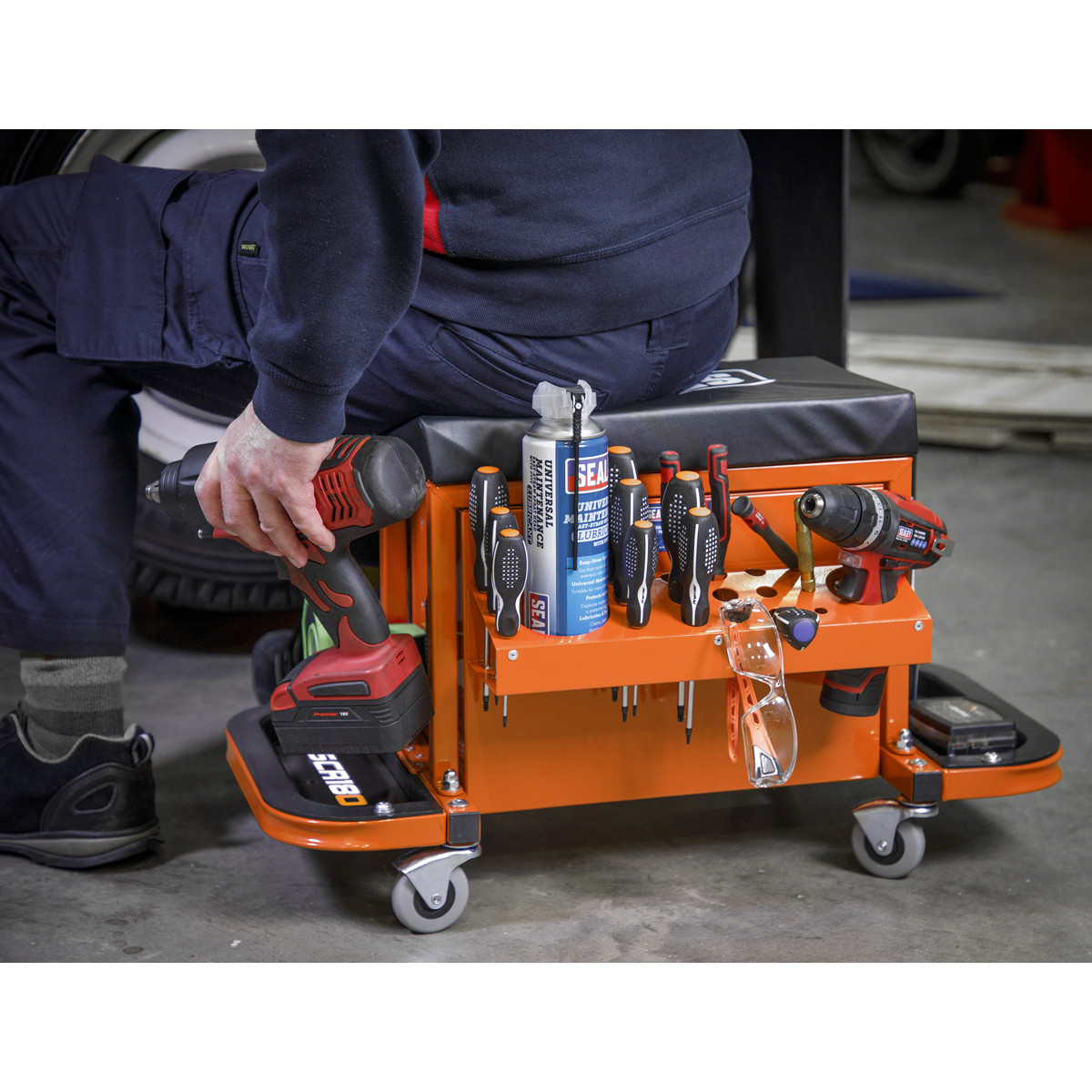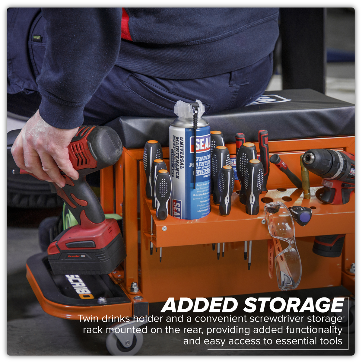 Instructions for the Sealey SCR18O Mechanic's Utility Seat & Toolbox - Orange