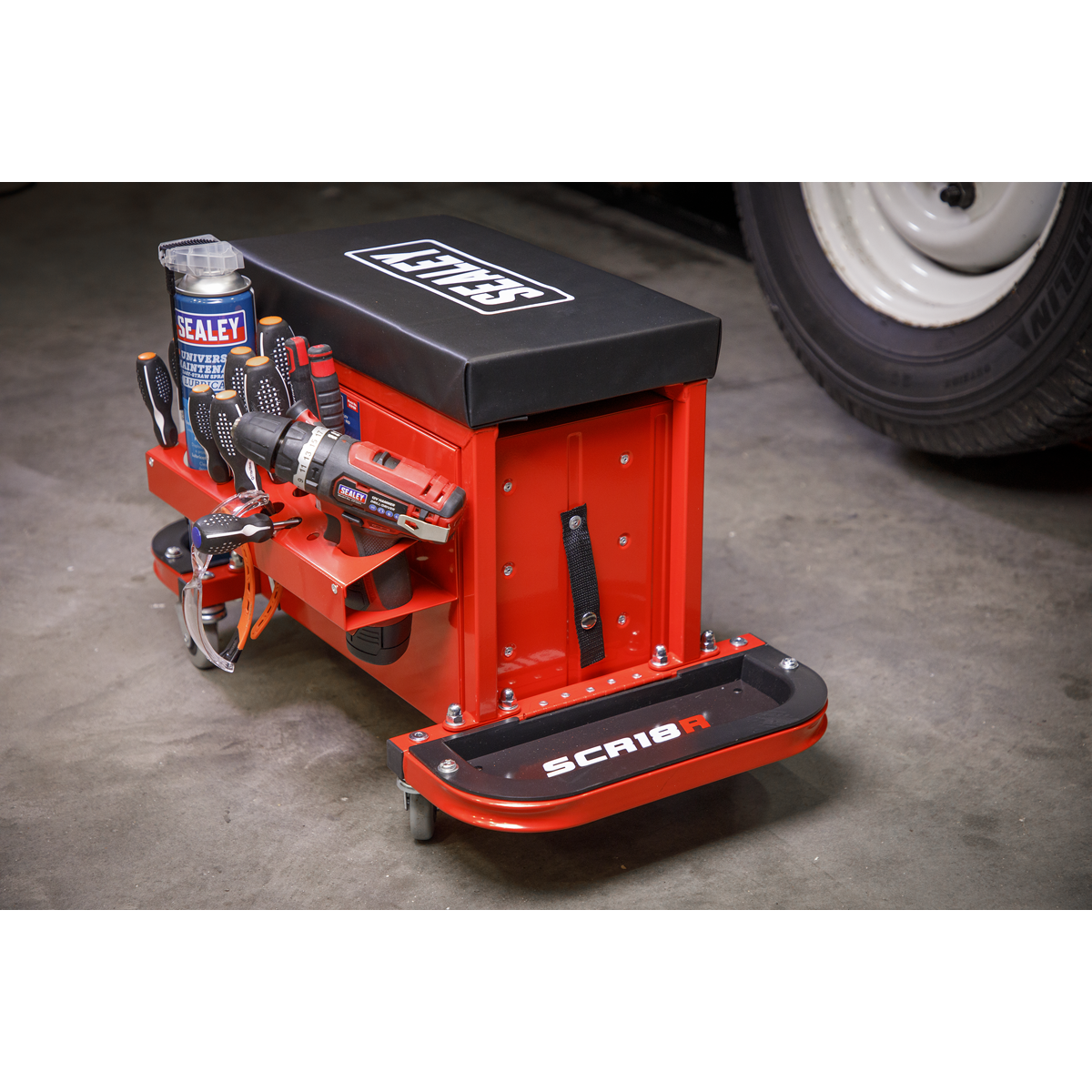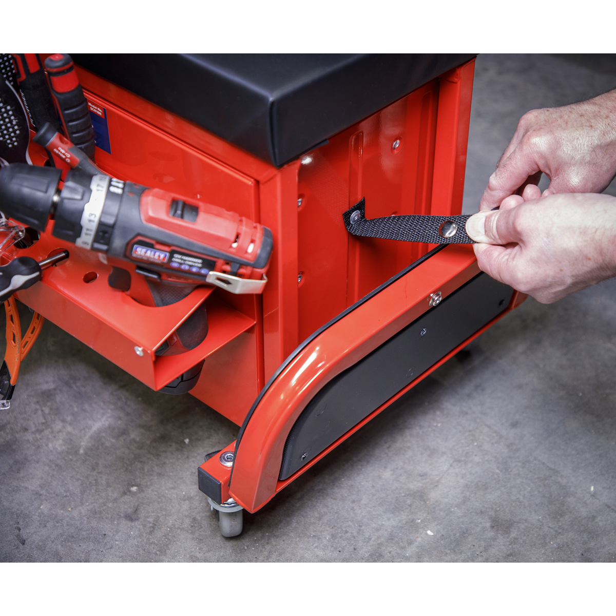 Instructions for the Sealey SCR18R Mechanic's Utility Seat & Toolbox - Red