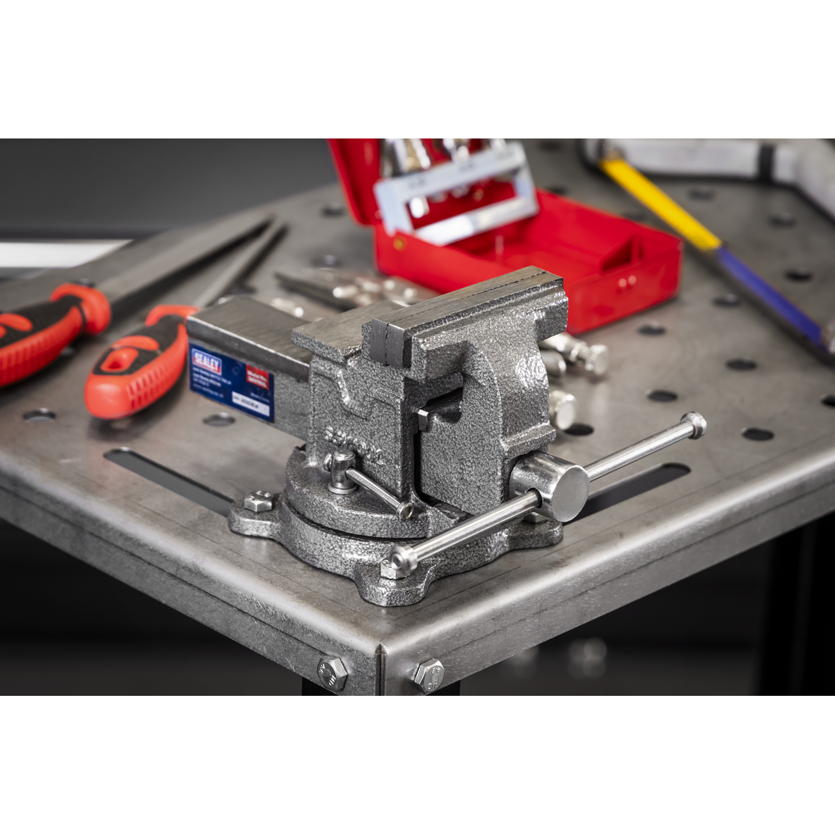 26.05 2026-03-26Made with SG Iron for a stronger, more durable, high strength, and impact resistance Vice. Swivel base provides greater flexibility and convenience when working on a piece from multiple directions without needing to reposition the workpiece itself. 100mm Hardened steel jaws for gripping materials securely. Three mounting holes on the base provide secure fitting to a workbench (fixings not included). A flat anvil surface on the back of the vice for hammering or shaping. Ideal for metalwork, woodwork and DIY repair tasks.