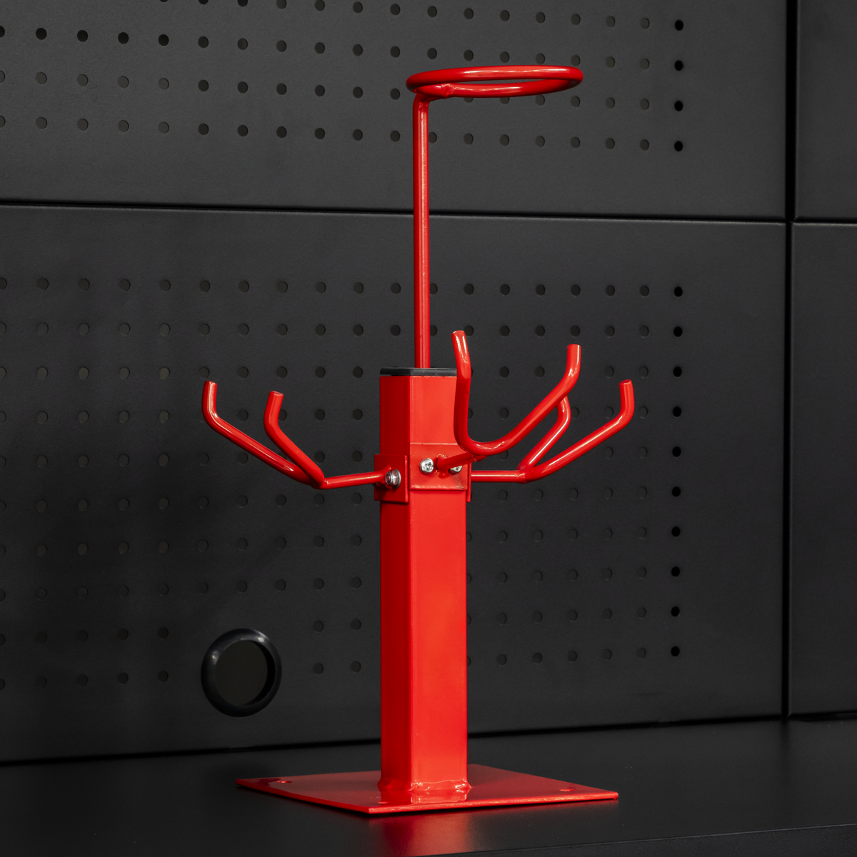 20.06 2025-11-10Heavy-duty triple gun stand, constructed from steel with painted finish. 60mm Wide hooks make this suitable for use with most gravity feed spray guns. Features an adjustable filter ring to make pot filling simpler.